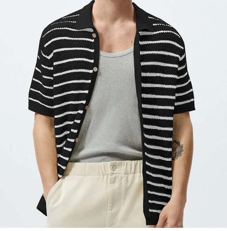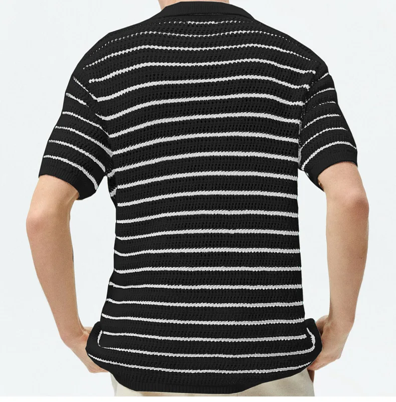 Men's Polo Shirt Light Luxury Knitted Clothing Popular Vintage Striped Short Sleeve Fashion Leisure Hollow Out Knitwear M-3XL