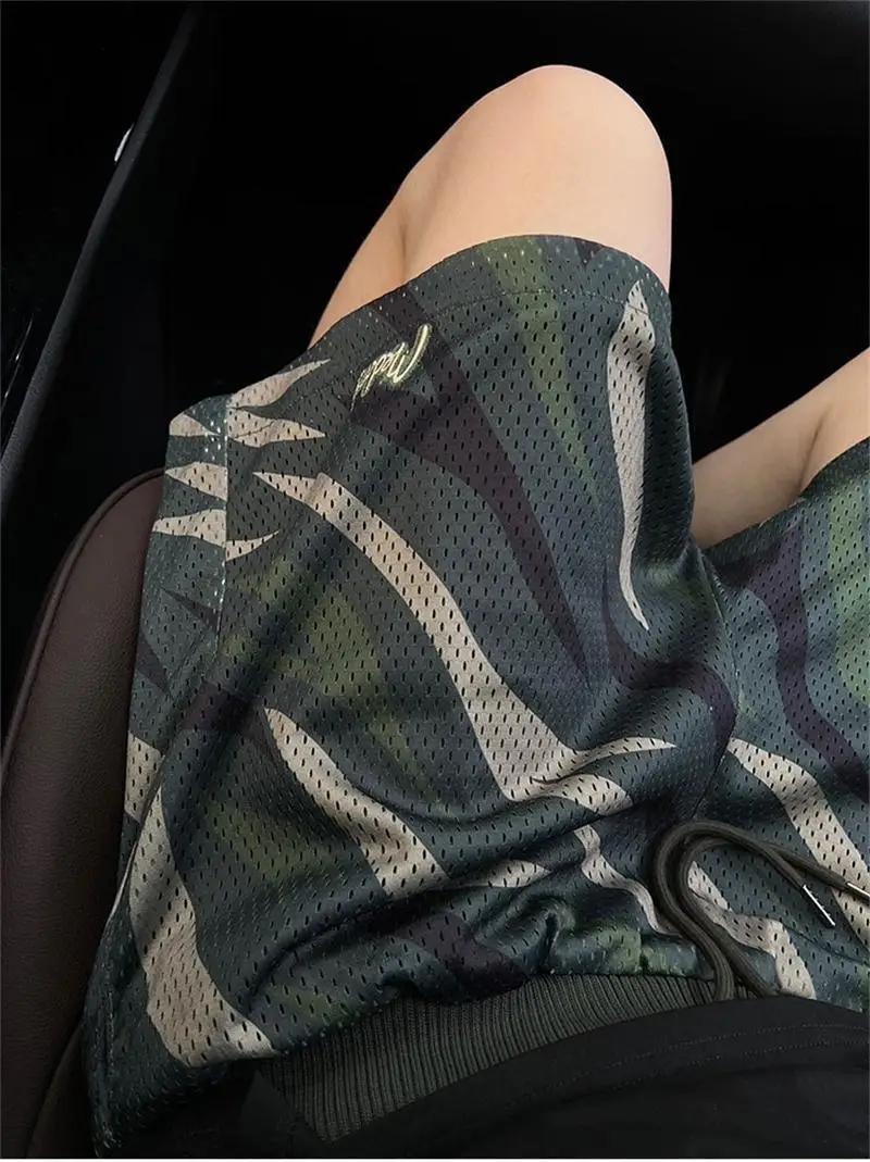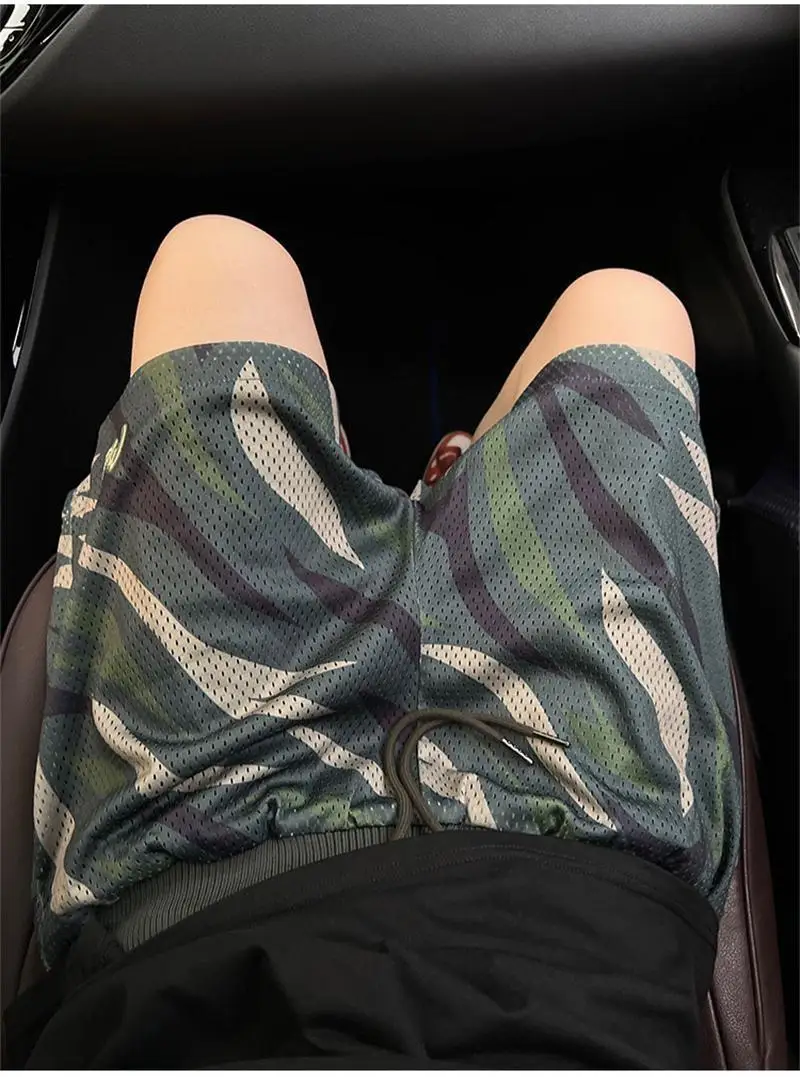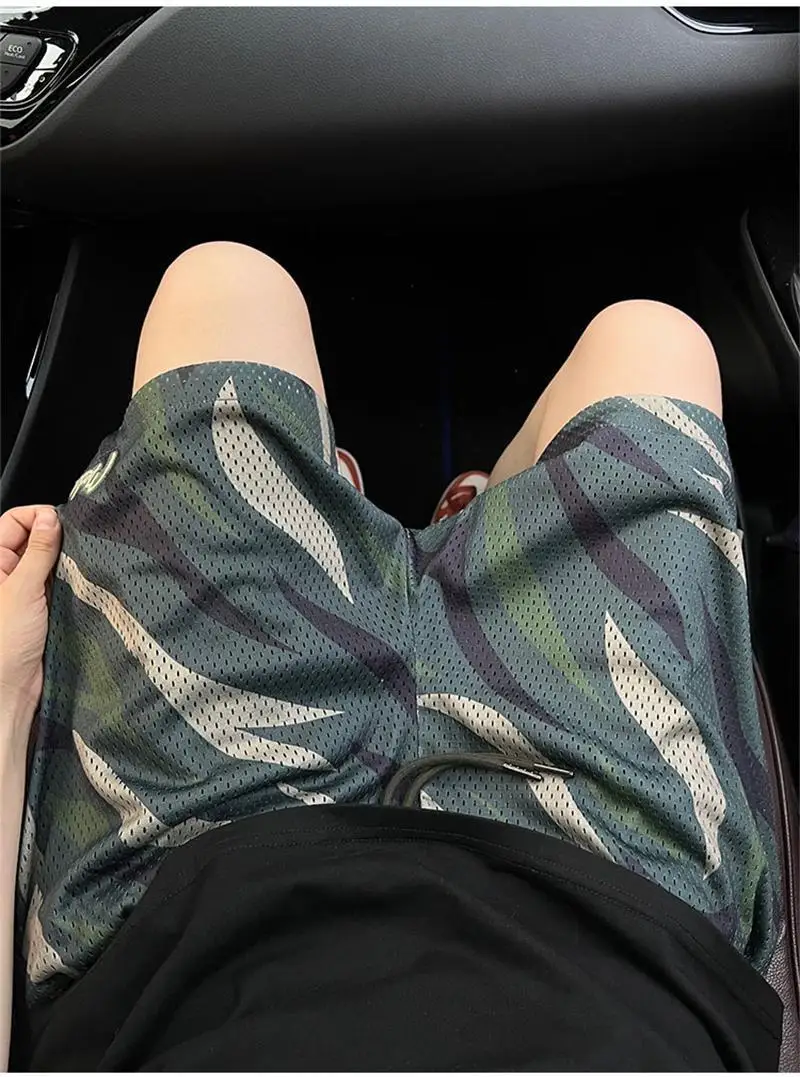 Men's Stripe Mesh Shorts Fitness Casual Thin Breathable Beach Pants Embroidery Loose Running Training Quick Dry Shorts 4XL