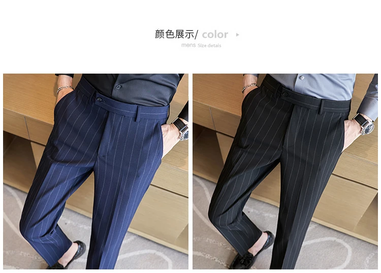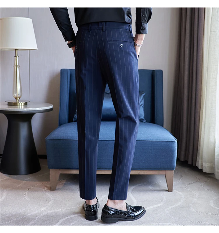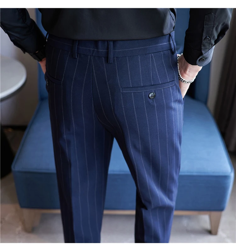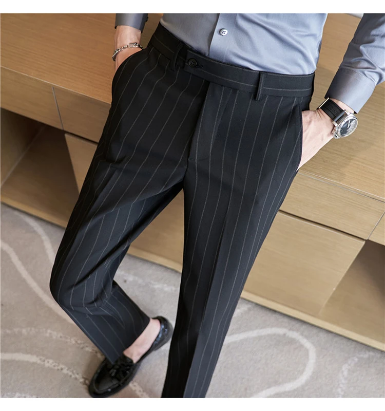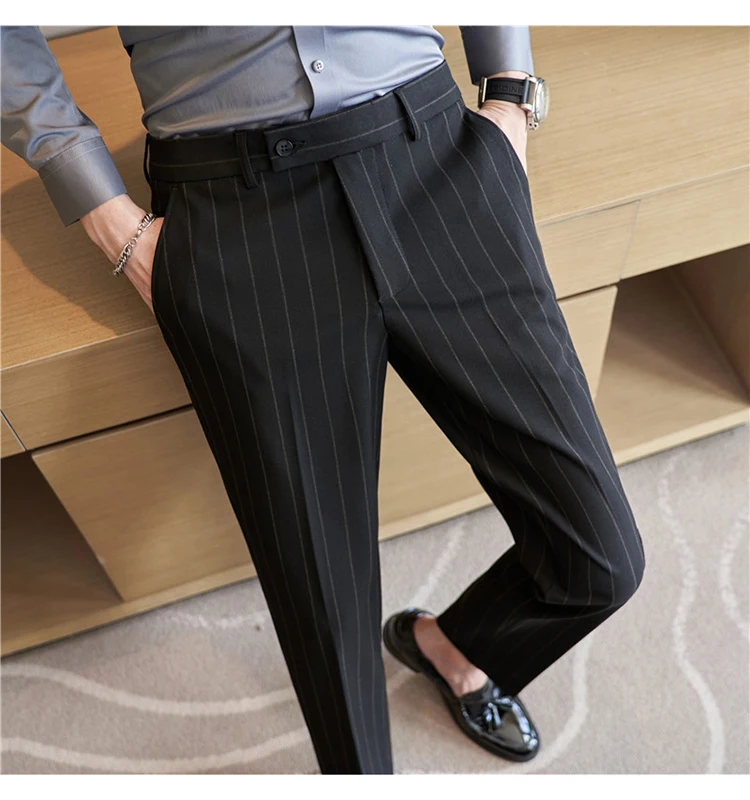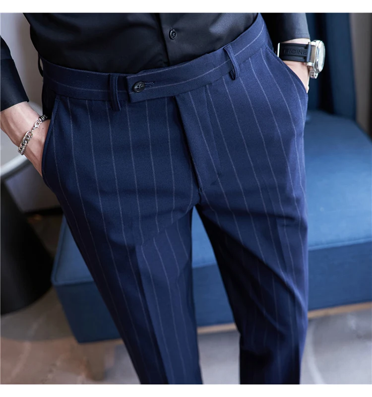 Men's Striped Suit Pants Elastic Autumn New Social Casual Trousers Slim Fit Suit Pants Business Office Wedding Men Clothing