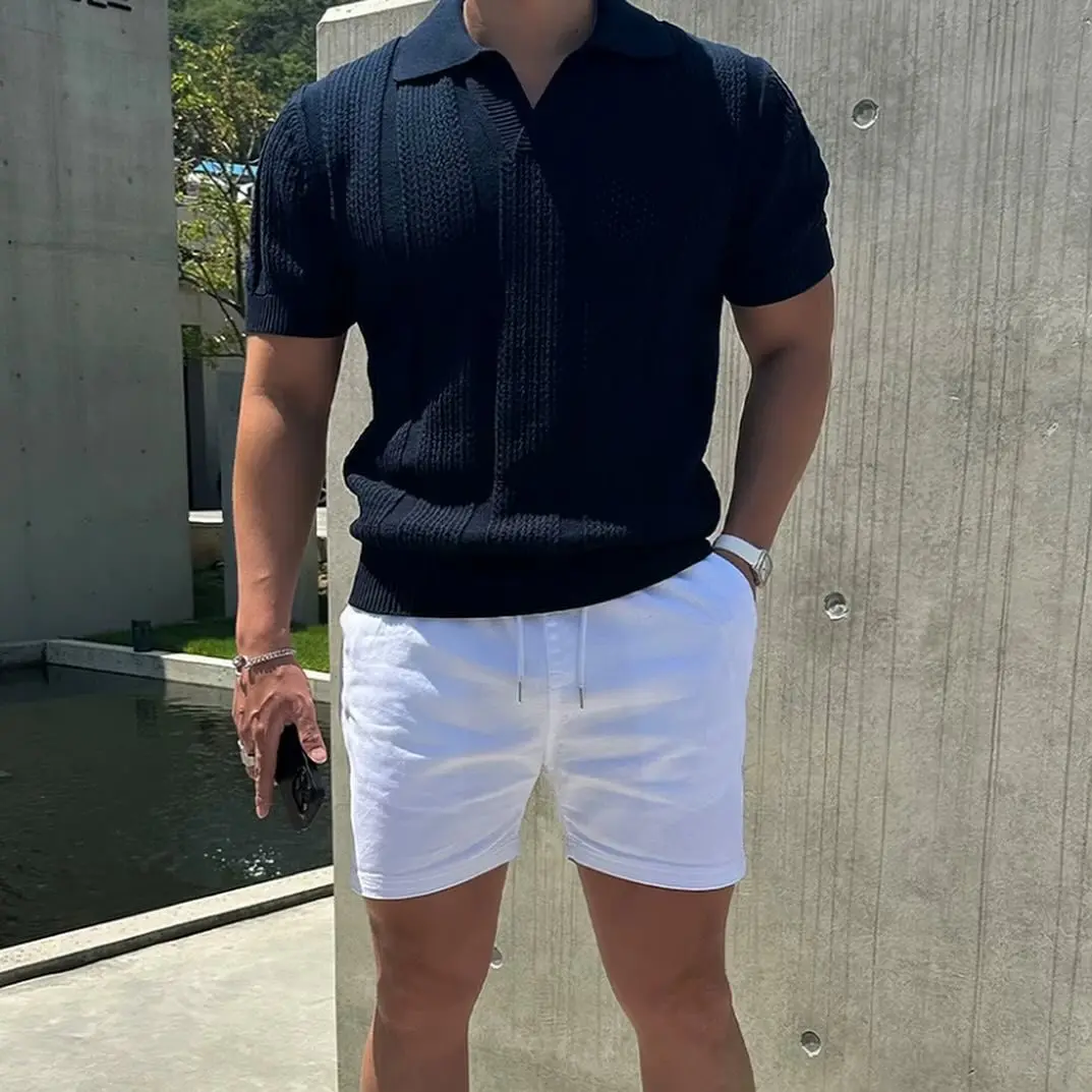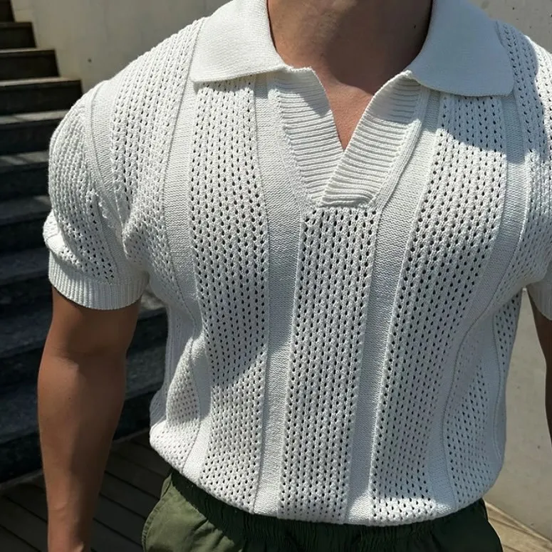 Men's Summer Korean Style Lightweight Knitshort Sleevespolo Shirt Hollow Mesh Texture Knitwear T-shirt Top Body Shirt