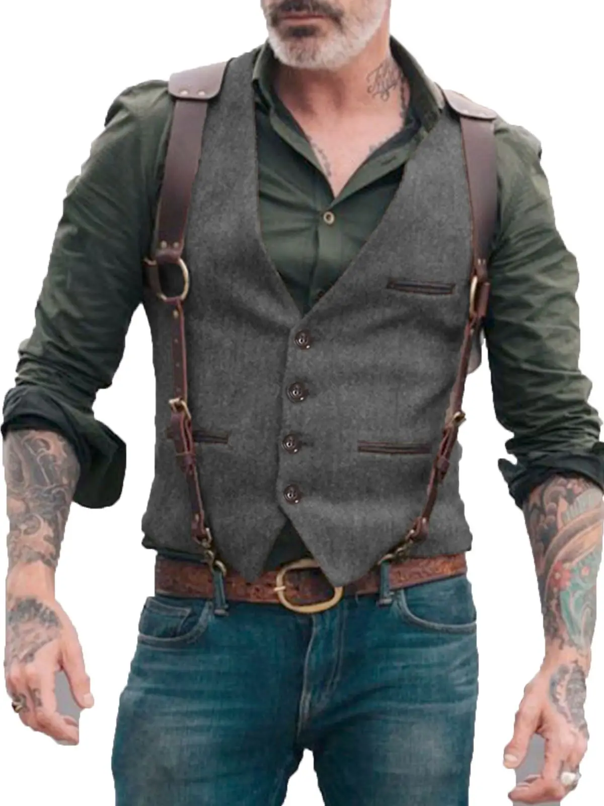 Men's Vests Men Brown Waistcoat Vest Man Steampunk Jacket Striped Tweed V-neck Slim Fit Gilet Wedding Clothing voguable