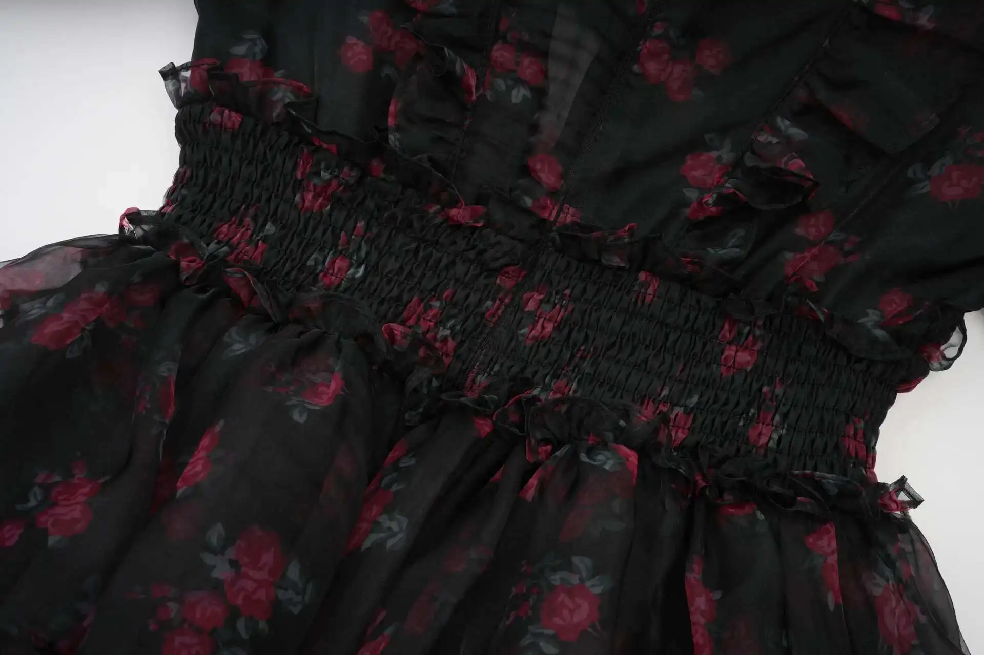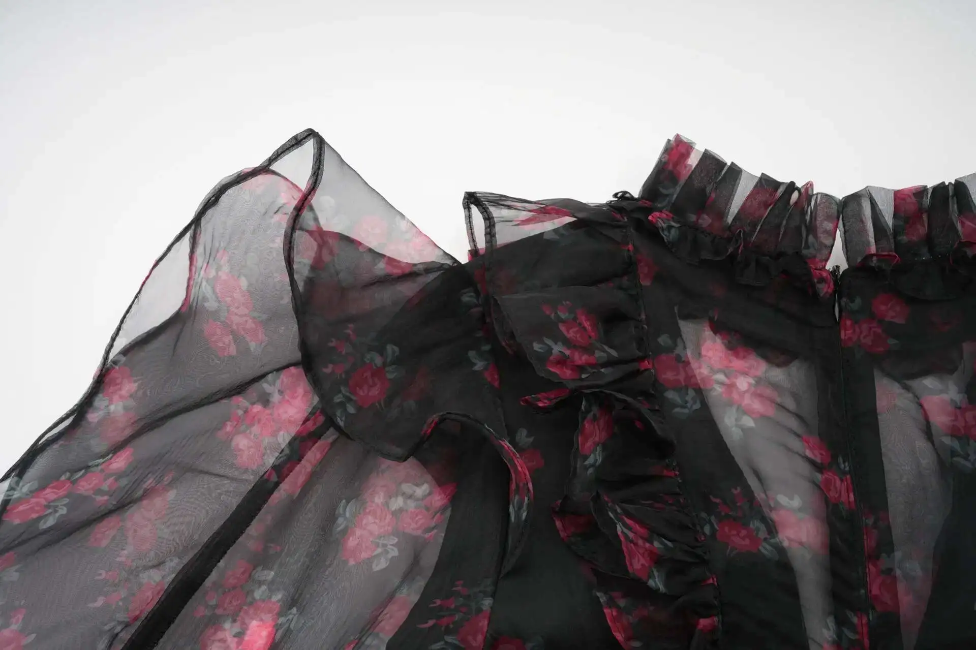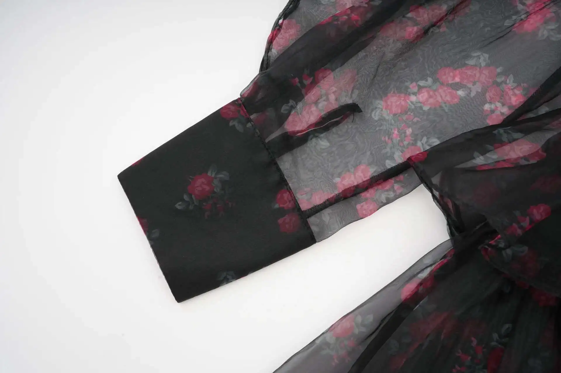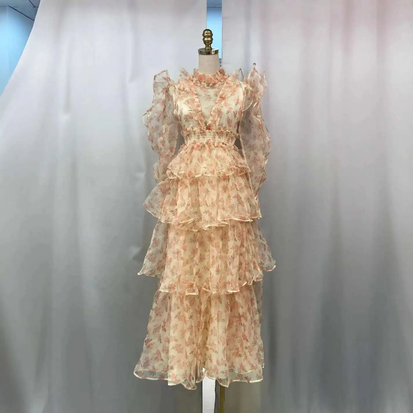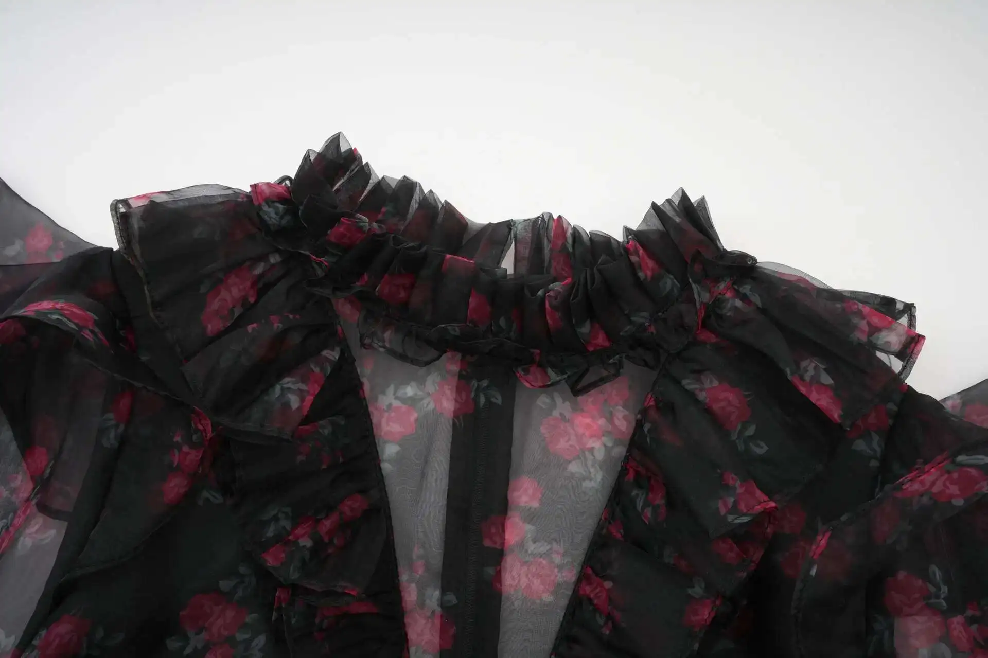 Mesh See-through Women Dress Zipper Flowers Edible Tree Fungus Design Stand Collar Full Sleeve 2025 Dresses Female
