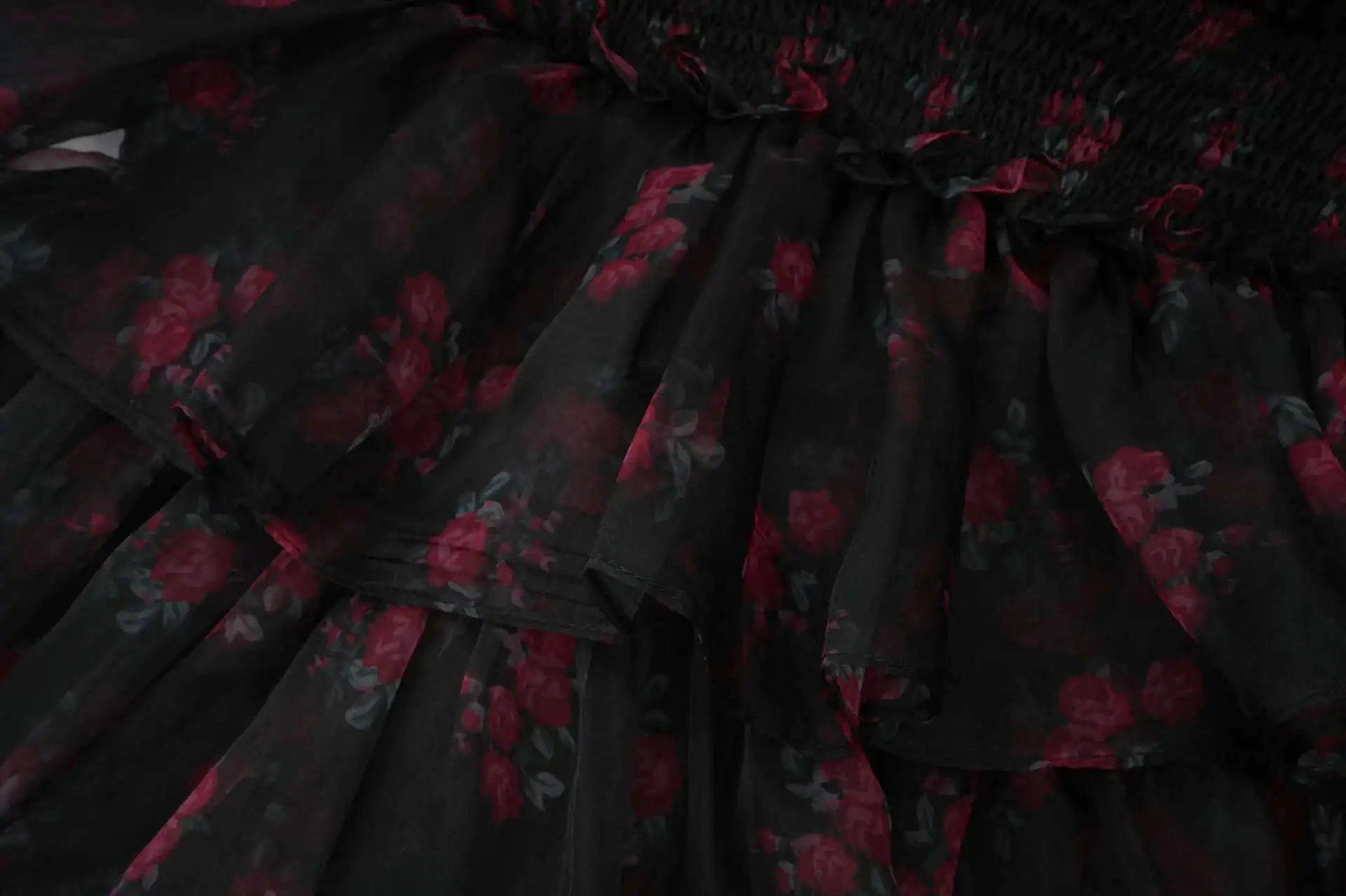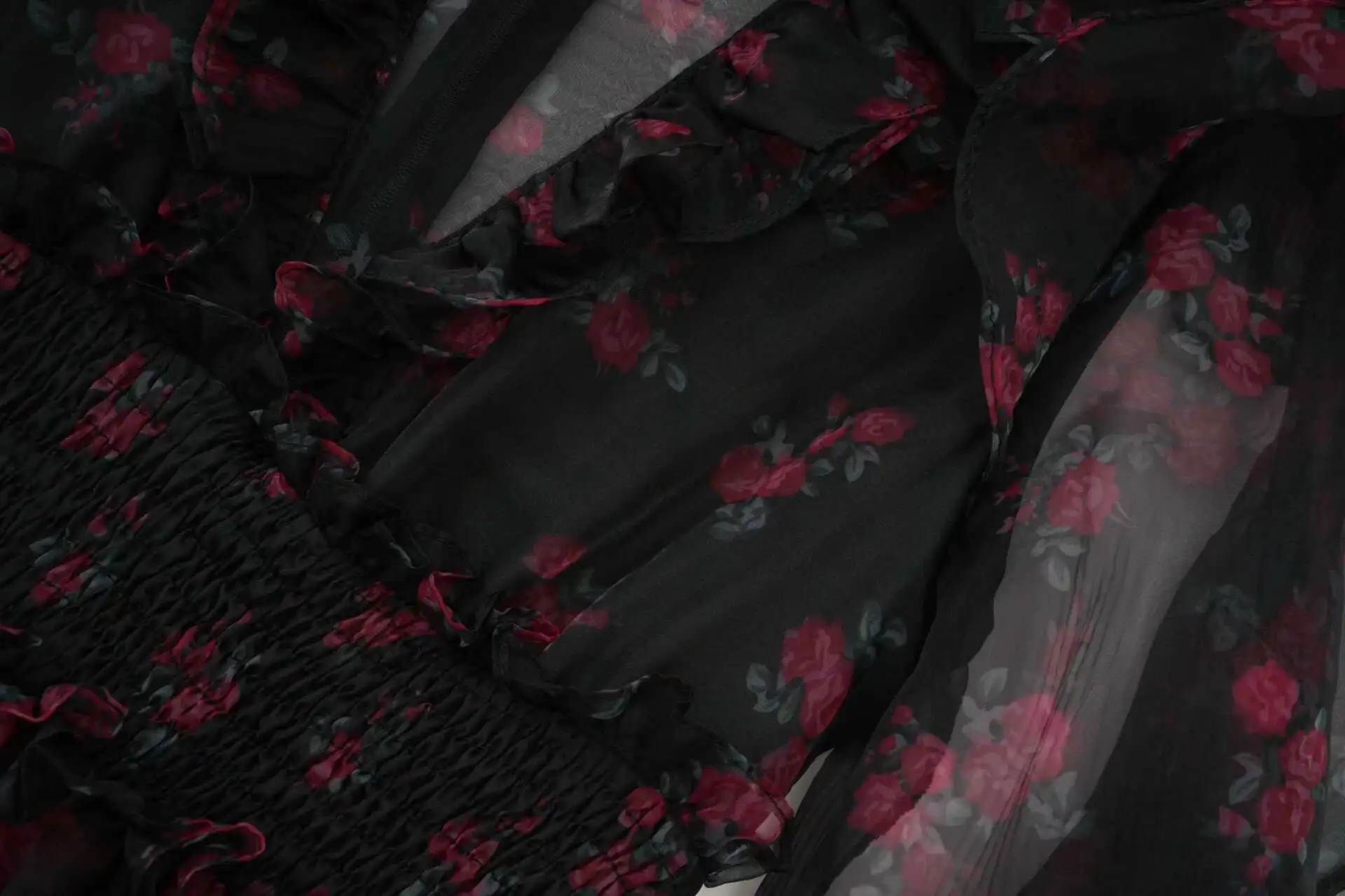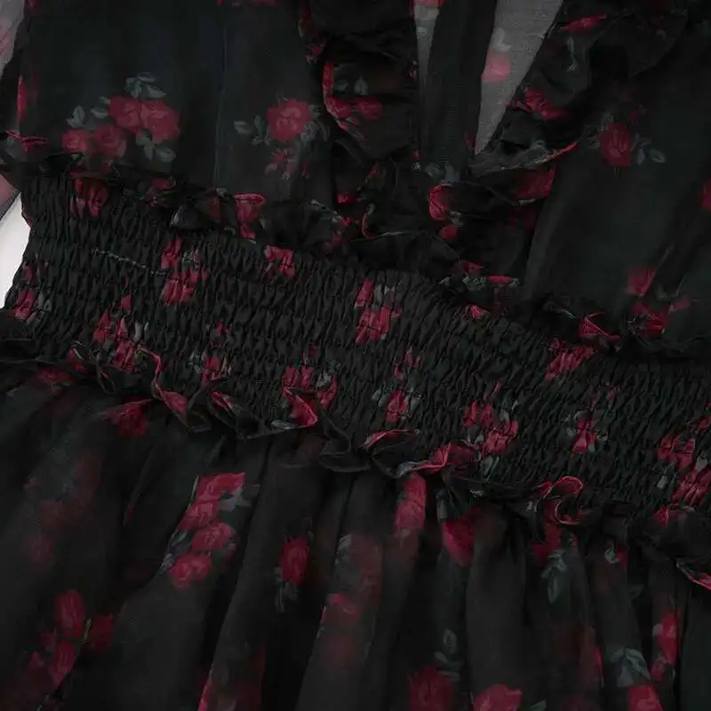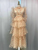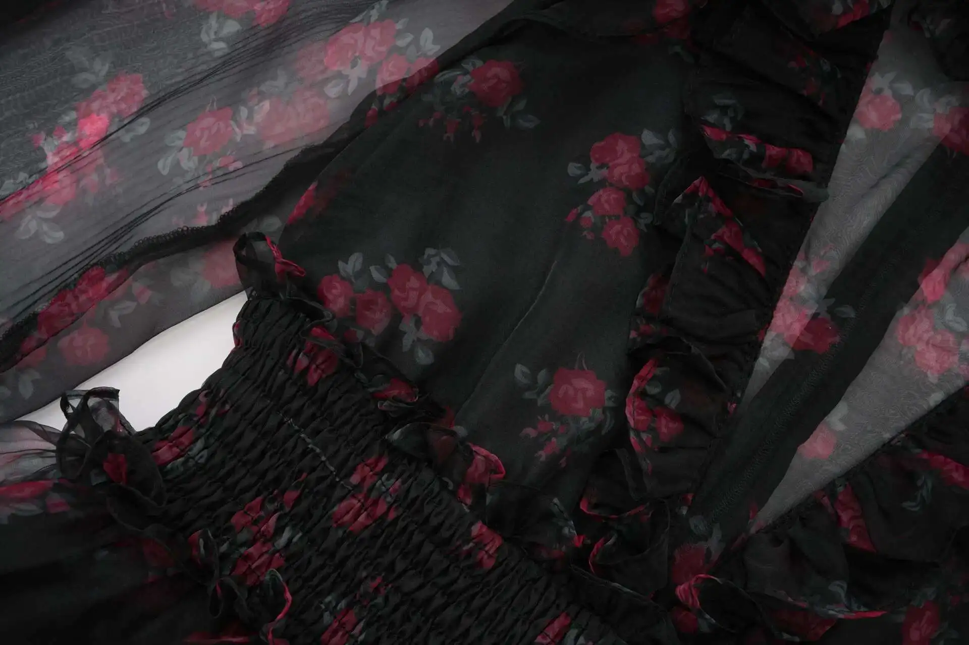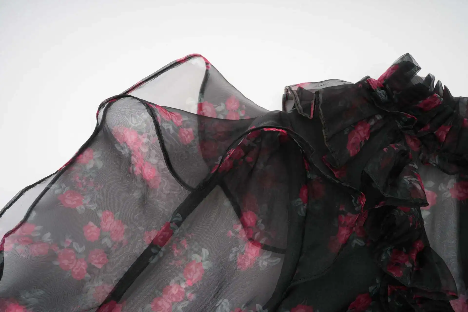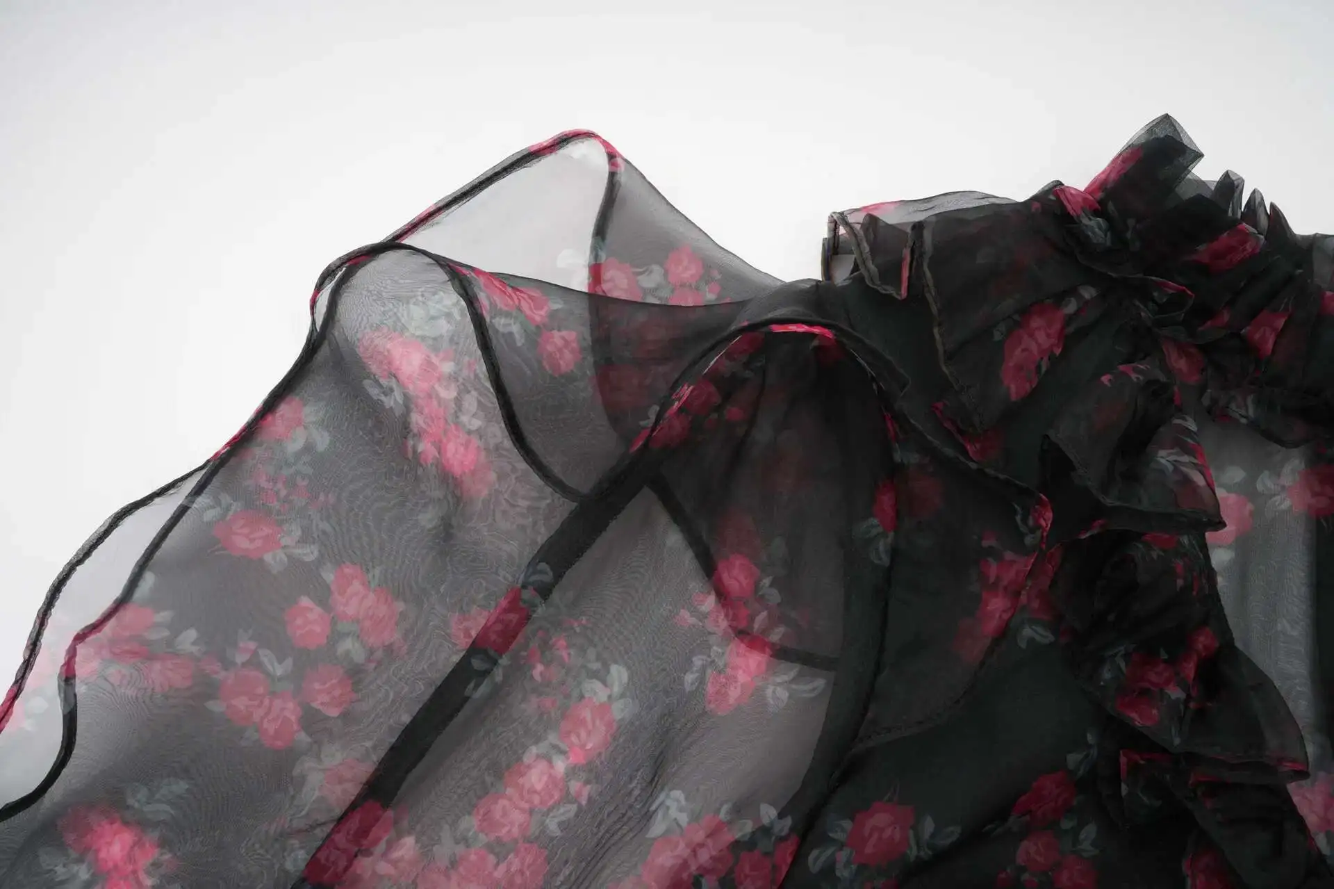 Mesh See-through Women Dress Zipper Flowers Edible Tree Fungus Design Stand Collar Full Sleeve 2025 Dresses Female