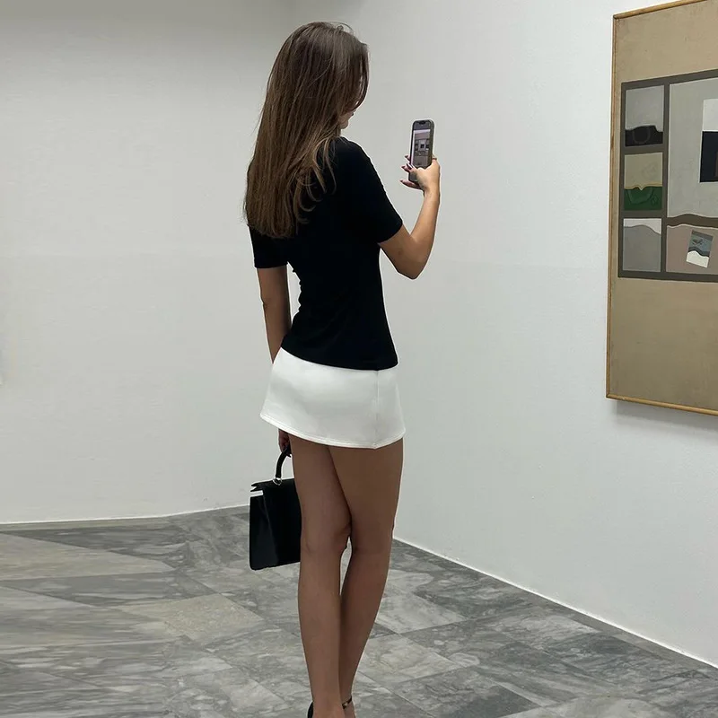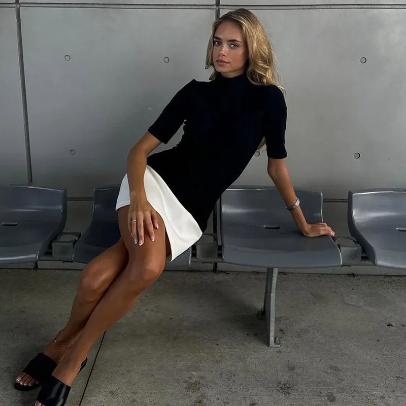 Sexy Half High Collar Half Sleeve Patchwork Mini Dress Women Slim Elegant High Waist Dress Streetwear Female Clothes