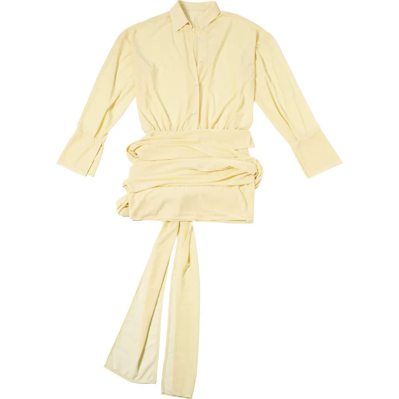 Sexy Long Sleeve Turn-down Colla Bag Hip Strap Shirt Dress For Women See Through Patchwork High Waist Dress Streetwear