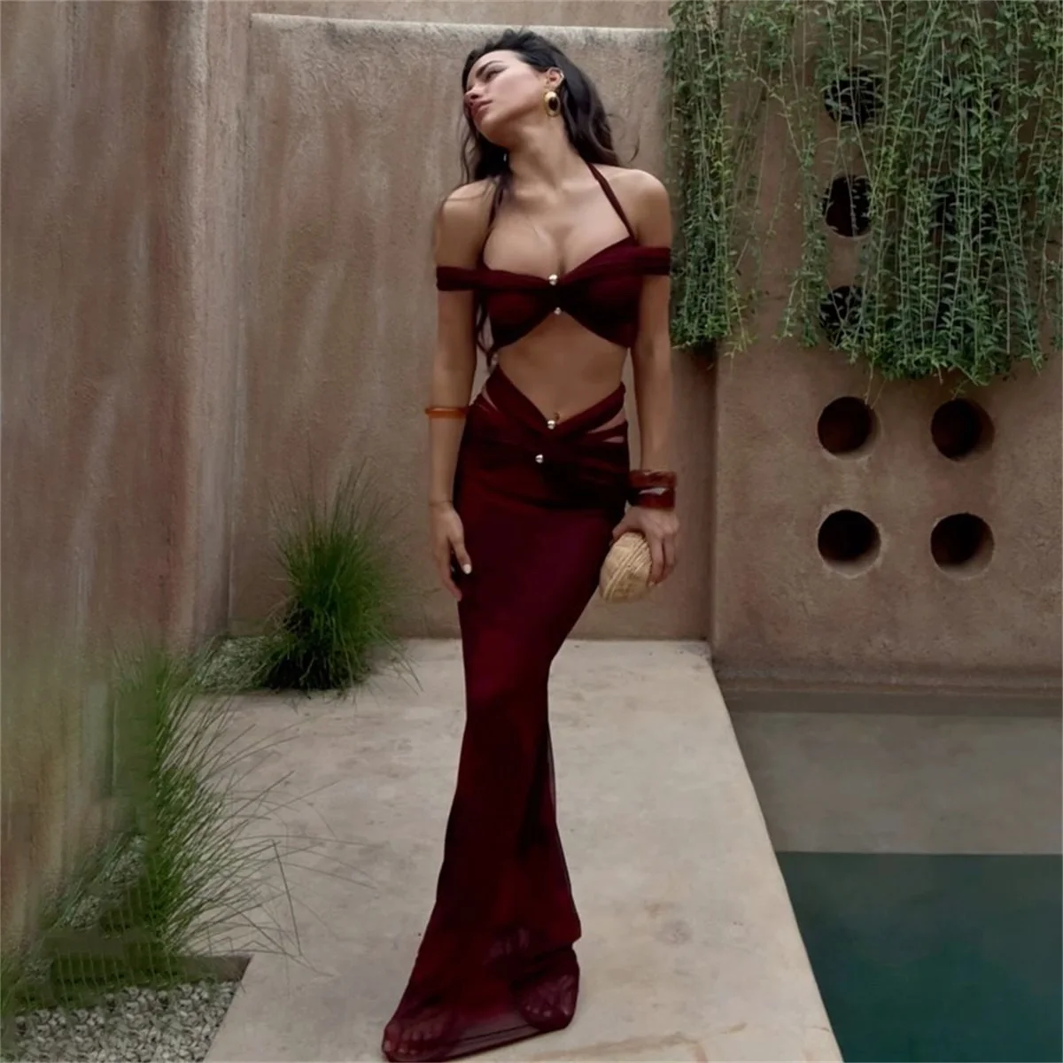New 3Pcs Bandeau Biquini Sexy Bikini Set Women Swimsuit Push Up Swimwear Female Long Skirt Slim Bathing Suits Beachwear Outfits