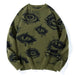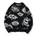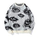 New American Trendy Men Sweater High Street Dark Eyes Printed Knit O Neck Long Sleeve Pullover Casual Loose High Street Knitwear