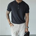 New Fashion American Style Men T-shirt Light Luxury Knitted Henry Collar Tees Casual Solid Color Short Sleeve Breathable Tops