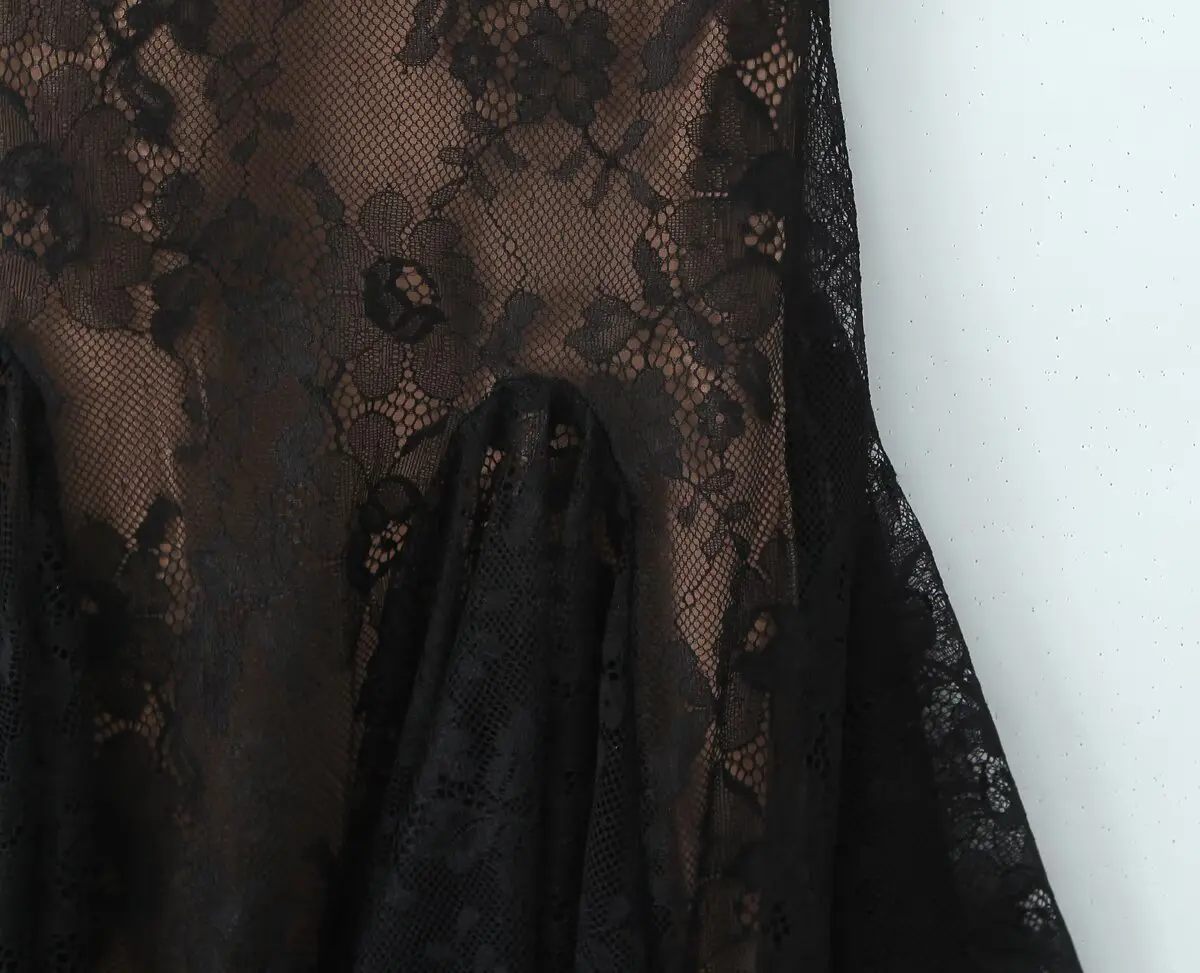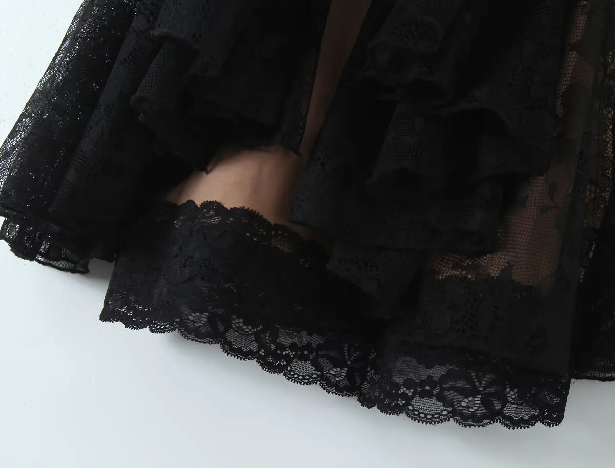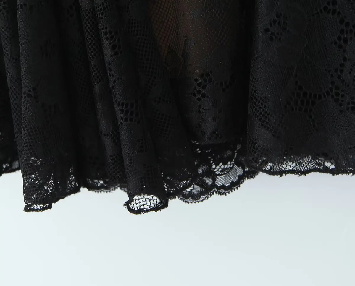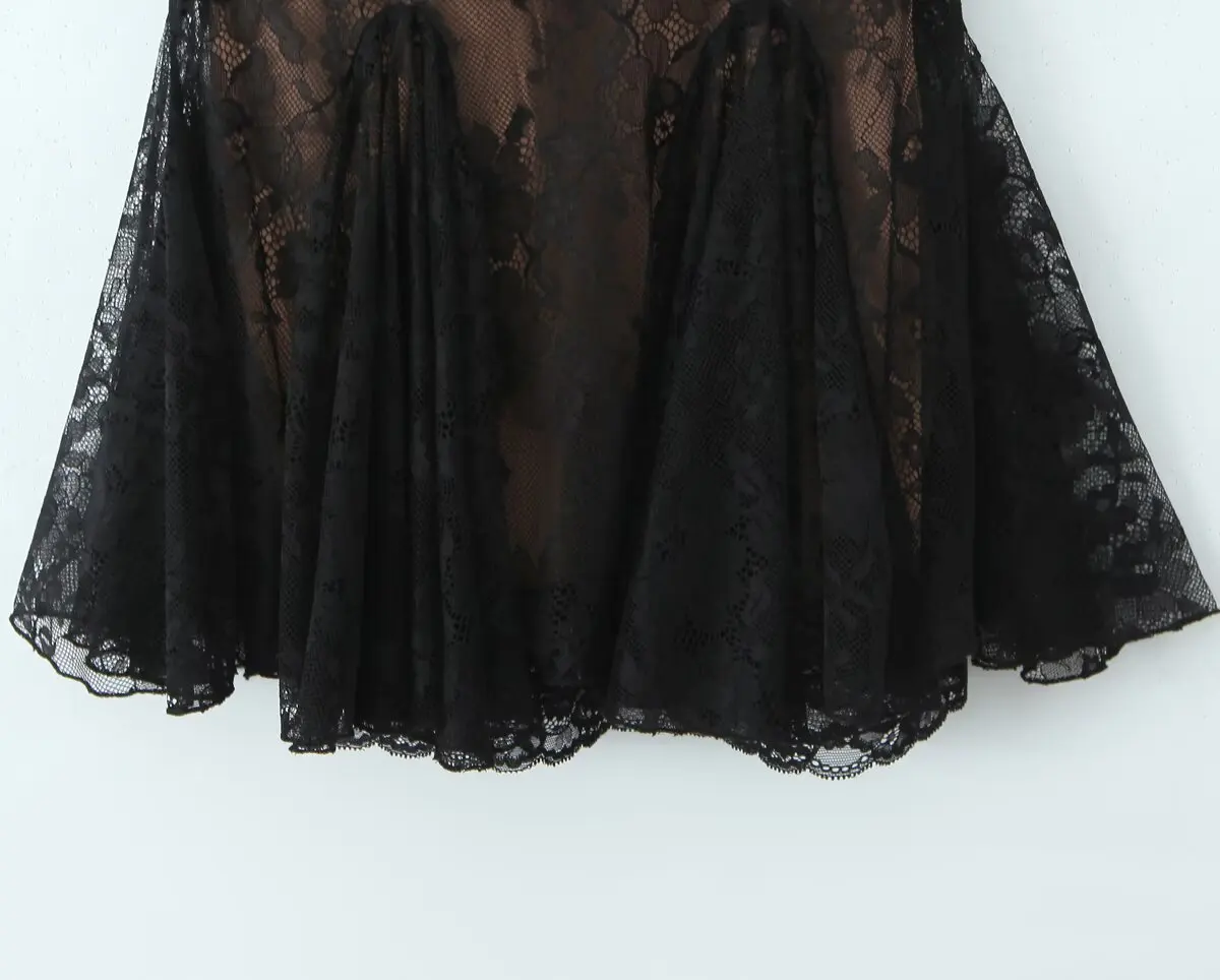 New Fashion Women Spaghetti Straps Lace Sexy Dresses Black Beige Backless Hollow Out A-line Mini Dress Night Out Robe