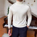 New Korean Fashion Men Sweater Light Luxury Trendy Turtleneck Knit Solid Color Pullover Leisure Retro Long Sleeve Basic Knitwear