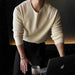 New Korean Fashion Men T-shirt Luxury Knitted Solid Color O Neck Long Sleeve Tees Casual Premium Quality Textured Knitwear M-3XL