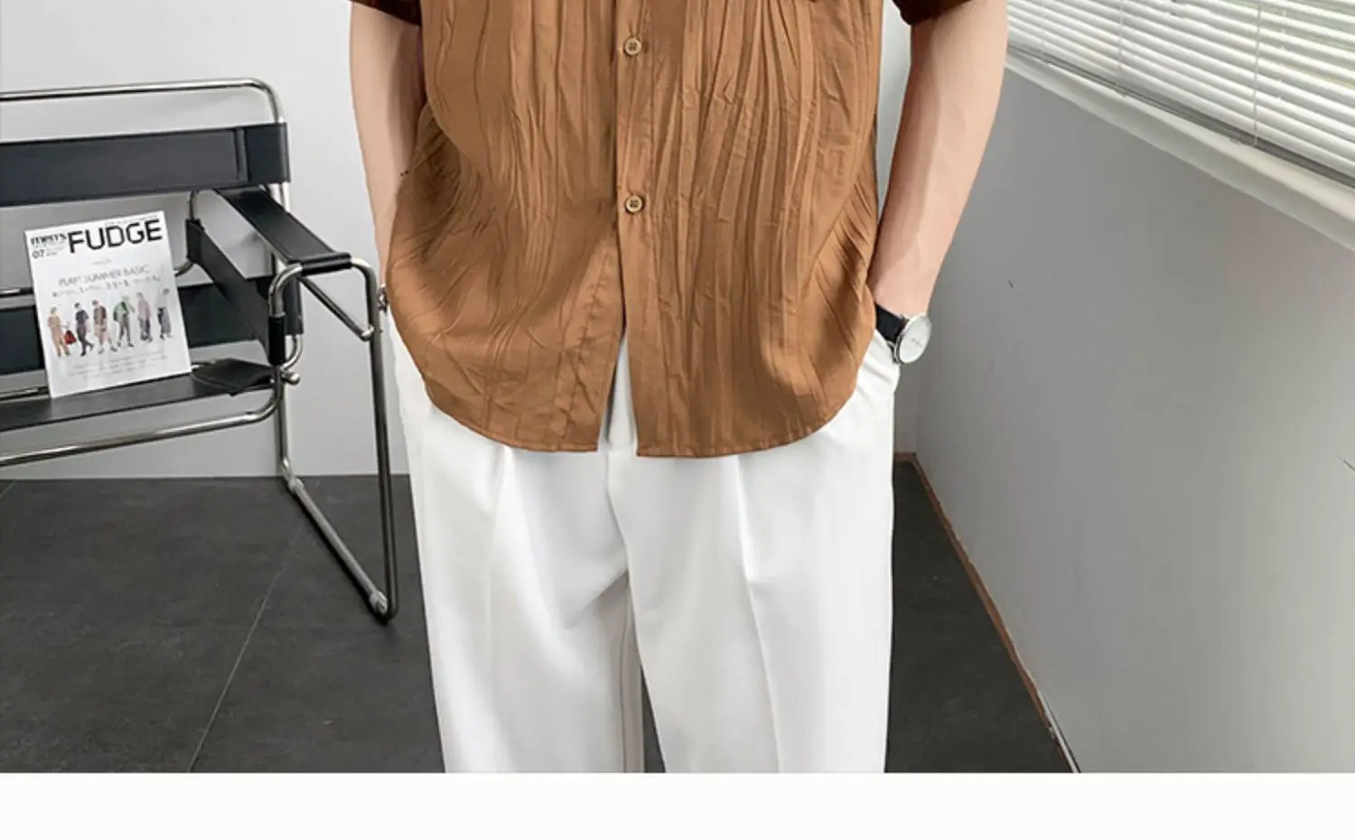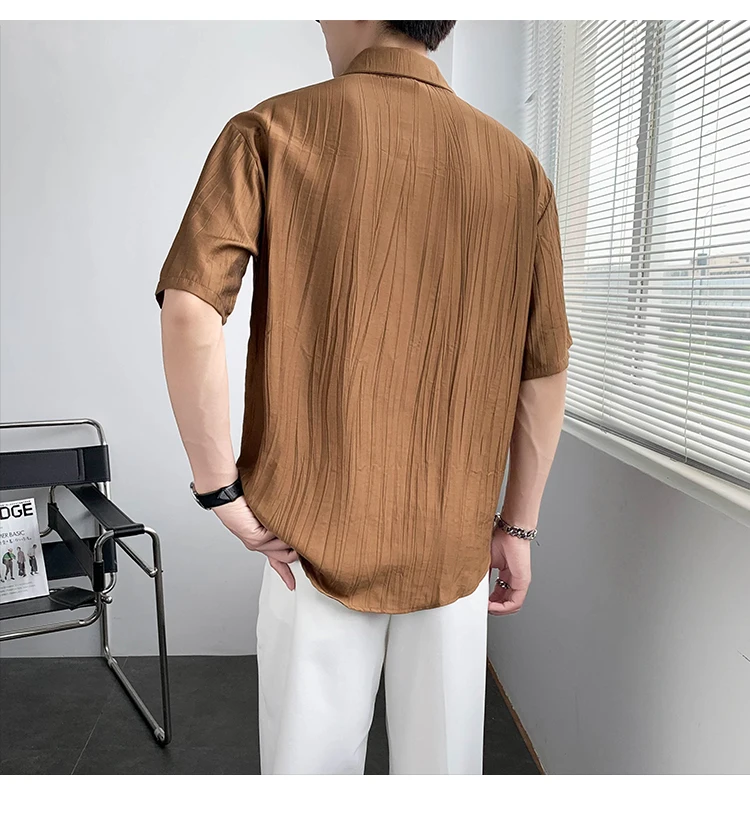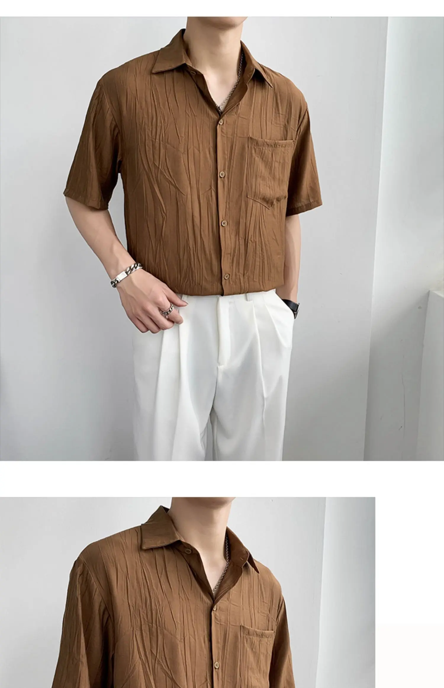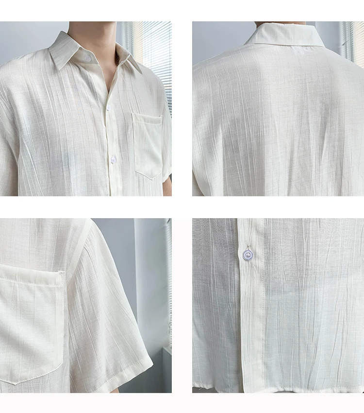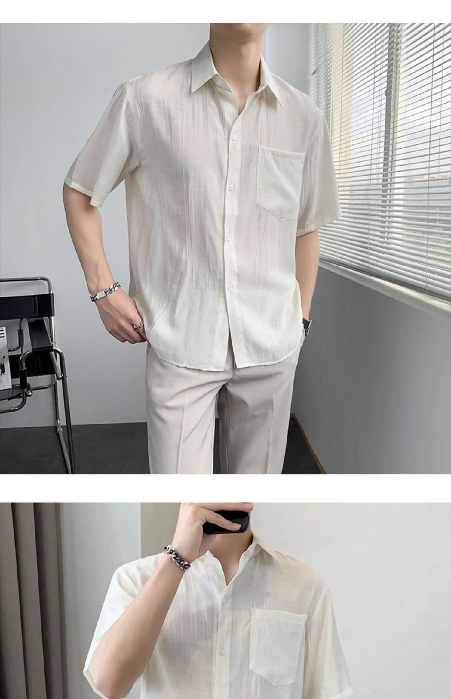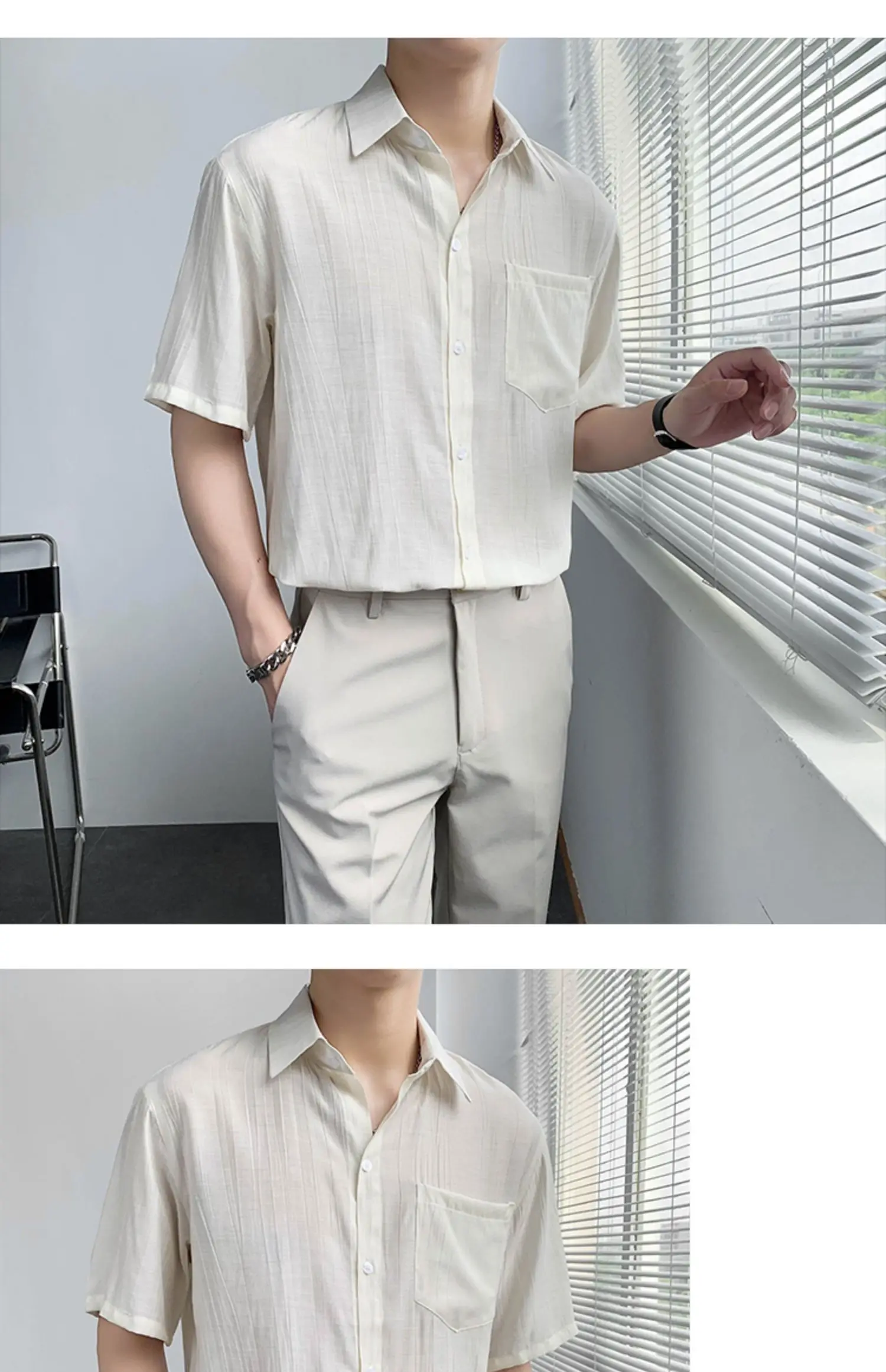 New Luxury Business Men Shirts Leisure Solid Color Short Sleeve Korean Popular Men's Clothing High Quality Cardigan Tops Summer
