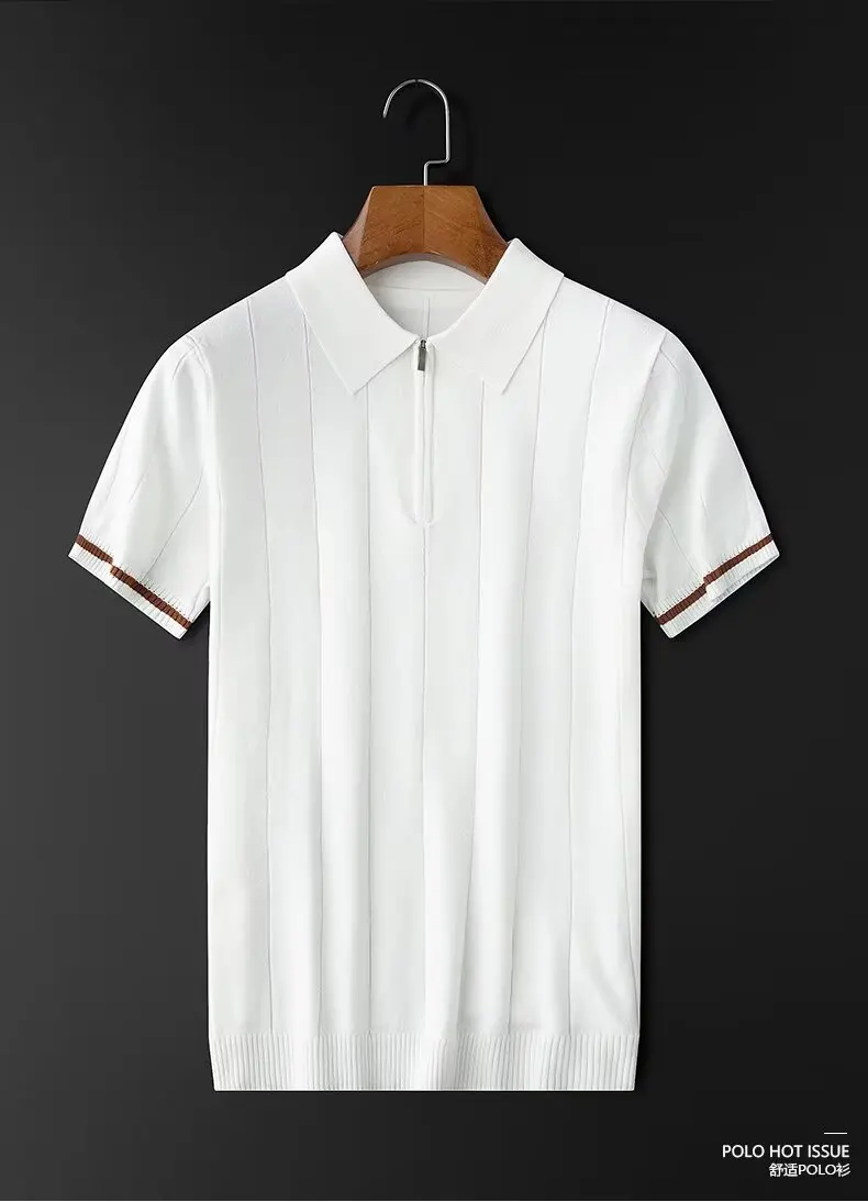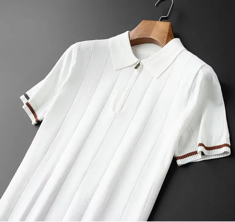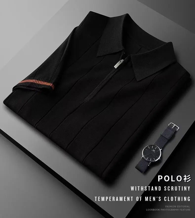 New Men's Clothing Light Luxury Business Knit Zipper Polo Shirt Leisure Short Sleeve Korean Popular Clothes Retro Knitwear M-3XL