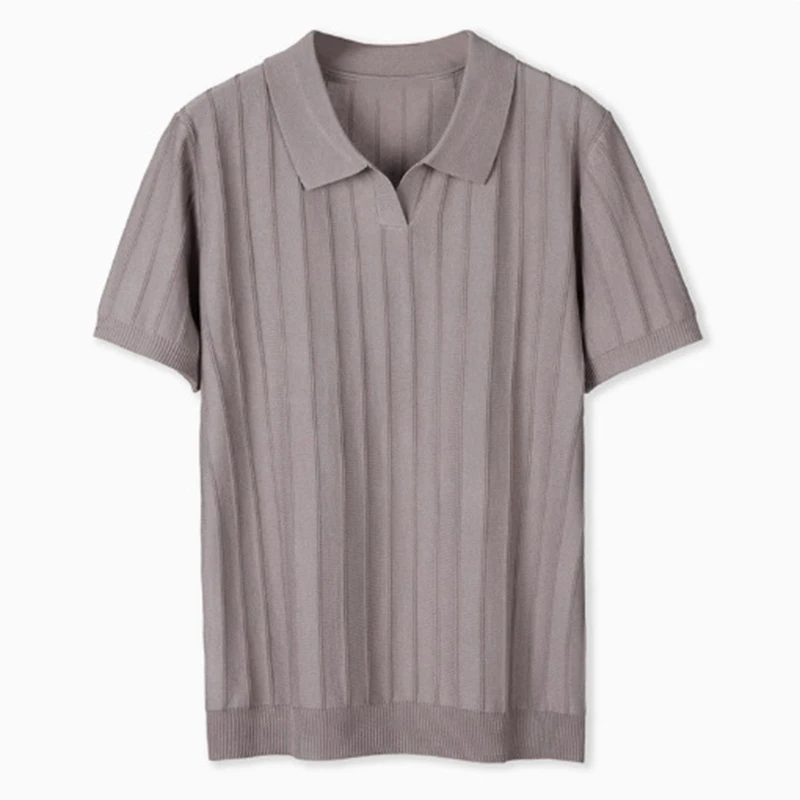 New Men's Clothing Luxury Business V Neck Polo Shirt Casual Slim-fit Knitted Solid Color Short Sleeve T-shirt High Quality Tops