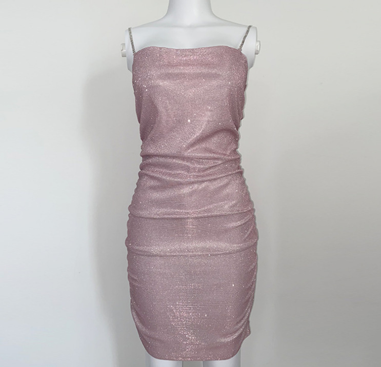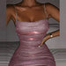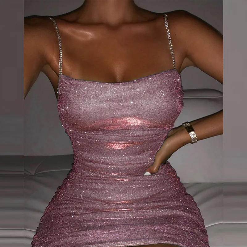 New Sexy Slash Neck Shiny Pleated Party Dress Women Fashion Elegant Backless Rhinestone Sling Mini Dresses Lady Chic Mujer