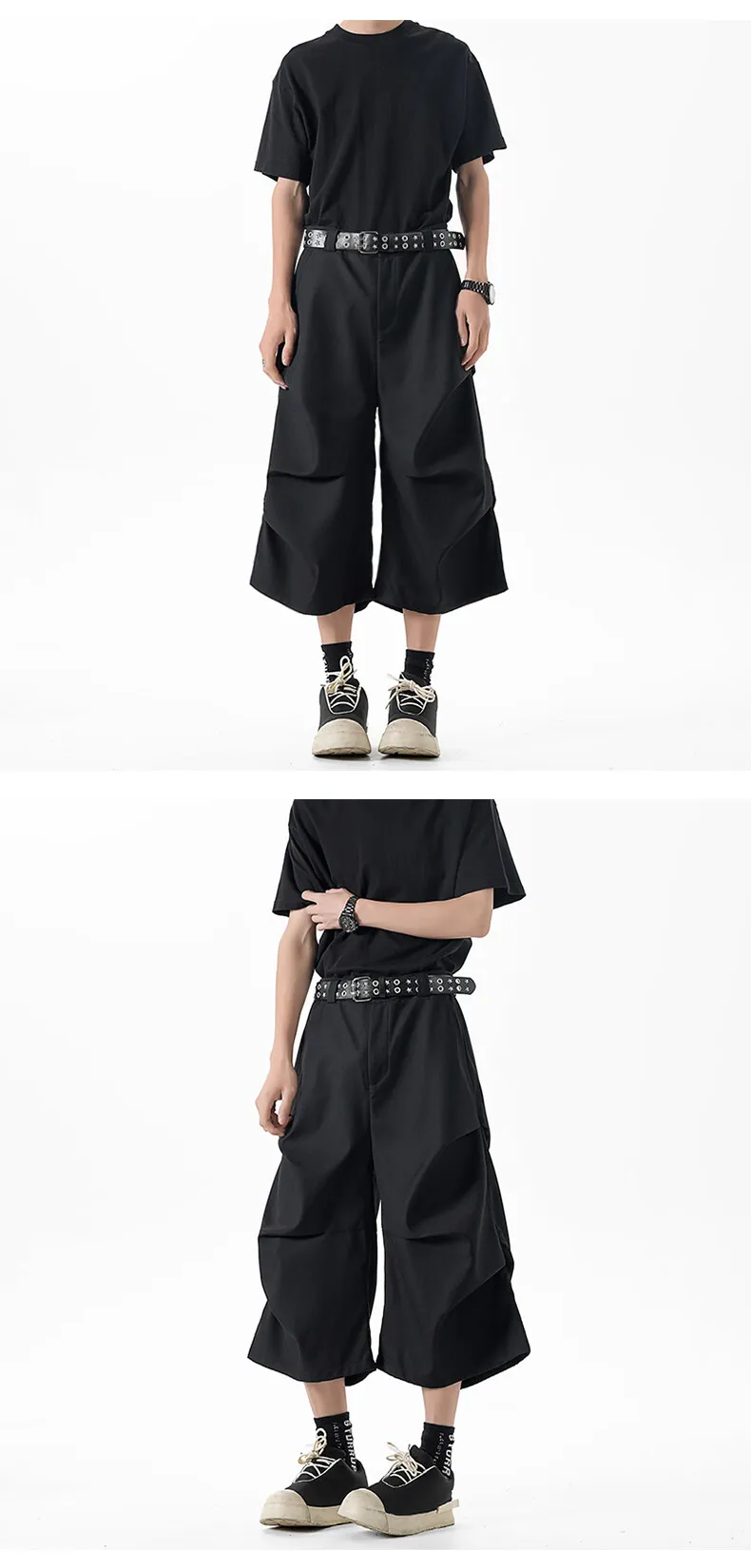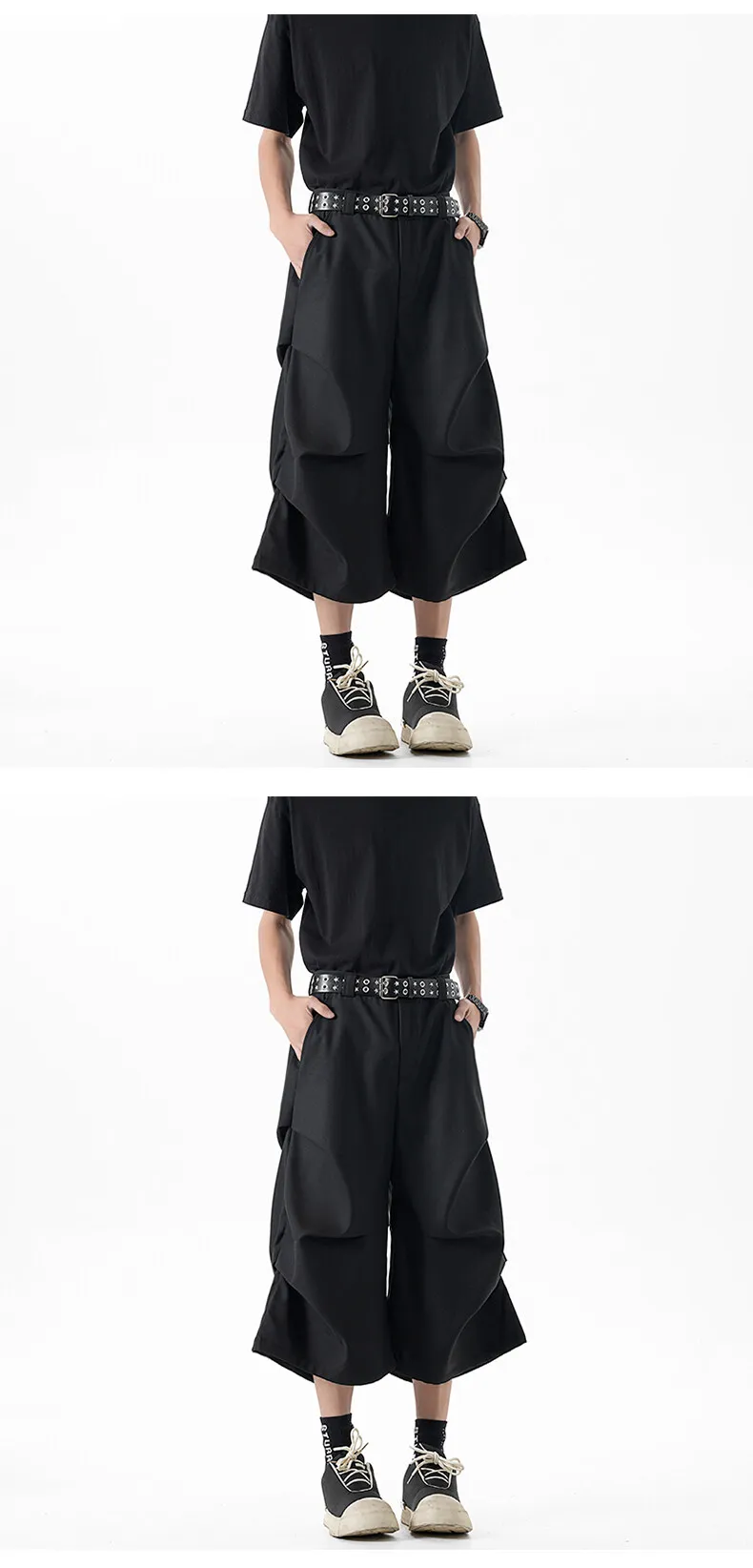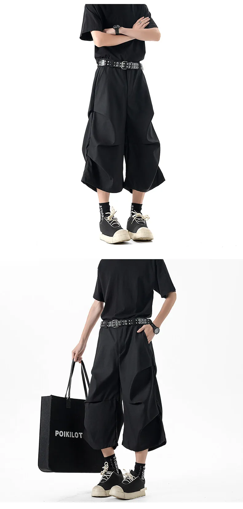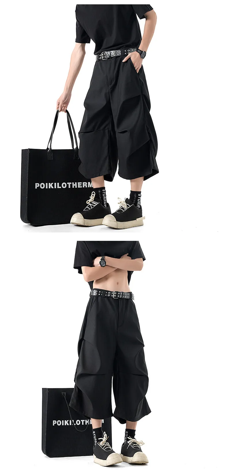 New Wide Leg Casual Pants mens Loose Fit Elastic Waist Outdoor Sport Capri Wrinkle Design Comfy Trousers for Women Men