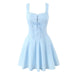 New Women Blue Elegant Party Mini Dresses Sexy Sleeveless Low Waist A-line Summer Dress Lace Up Back Robe