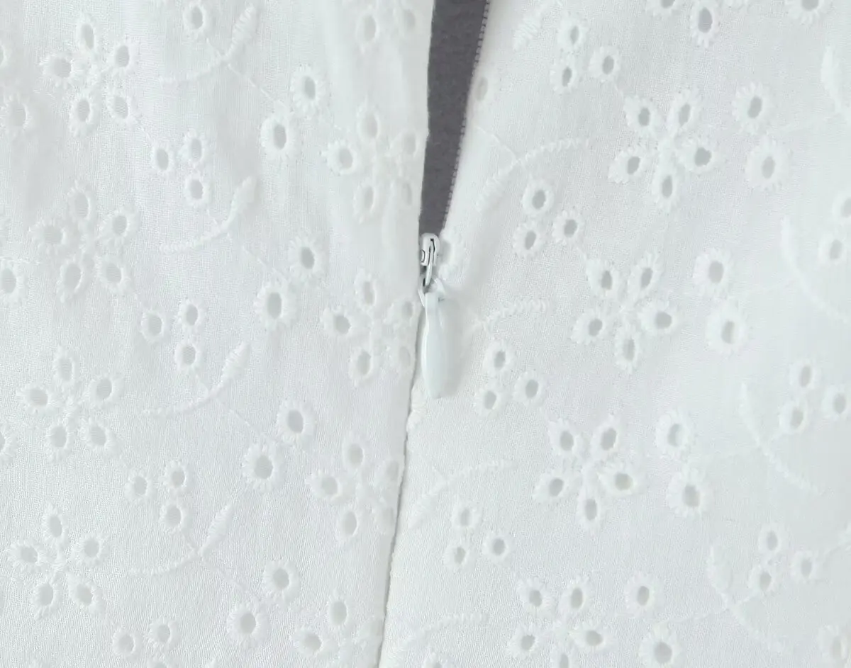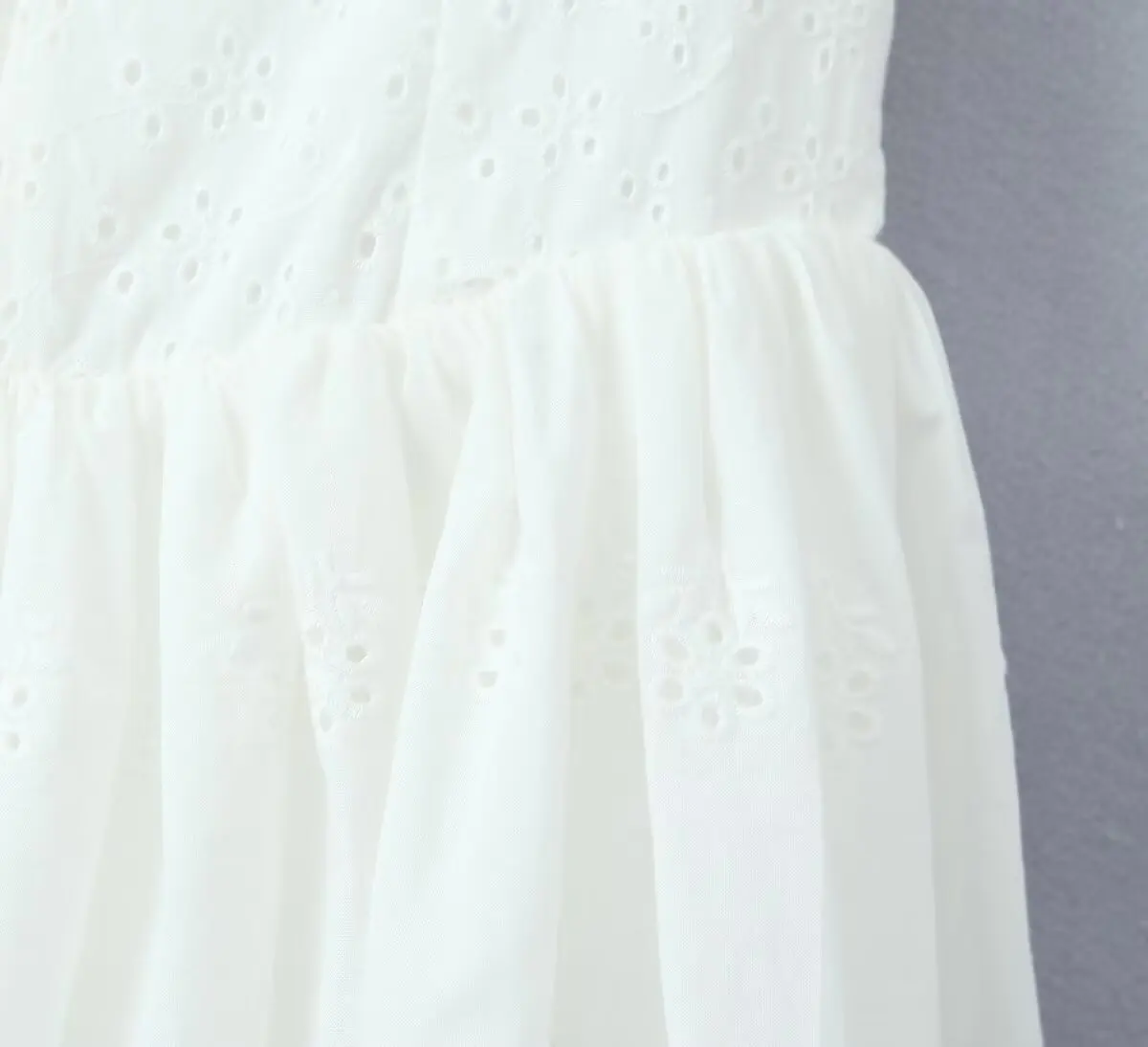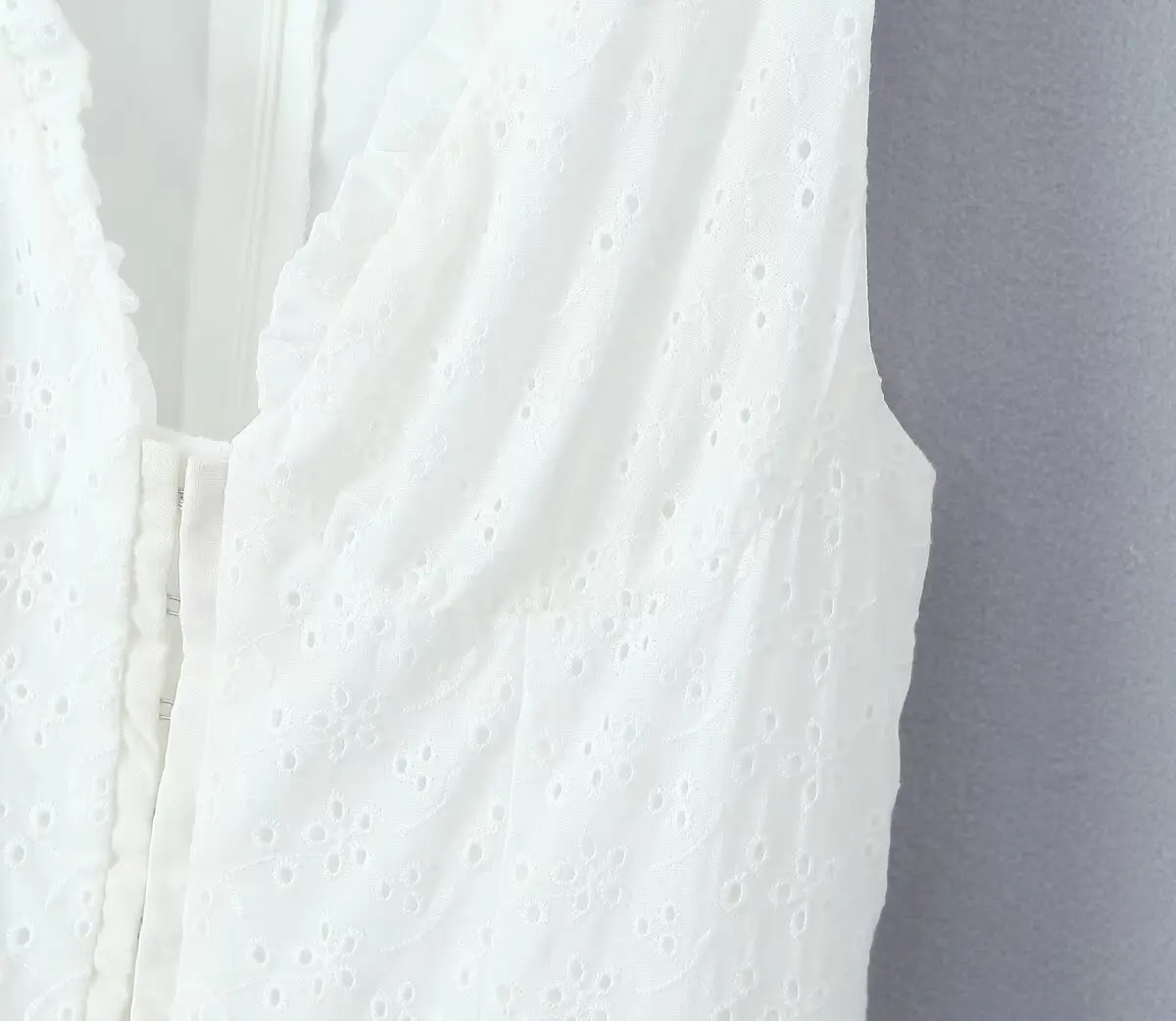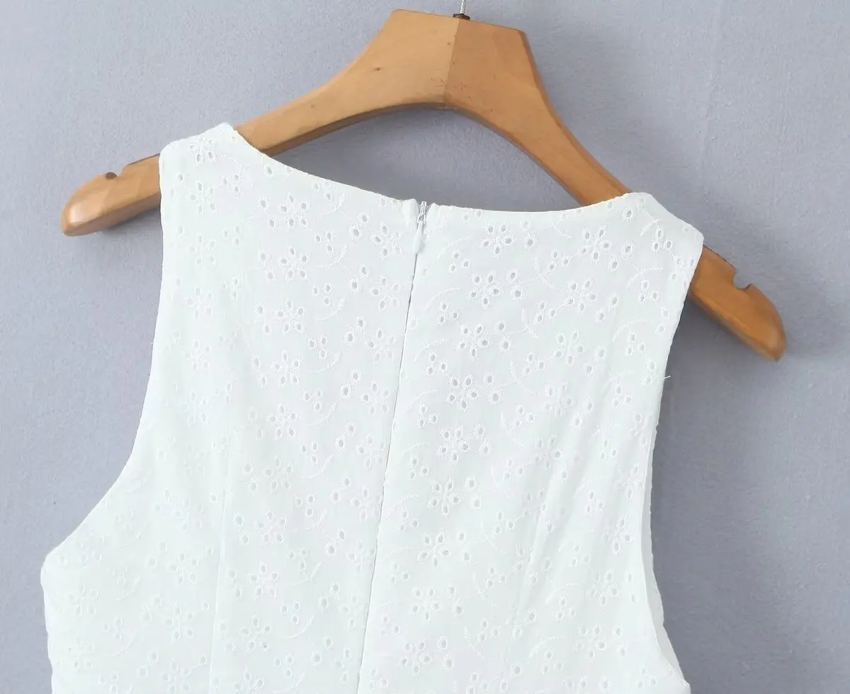 New 2025 Women Hollow Out Embroidery White Tank Dress