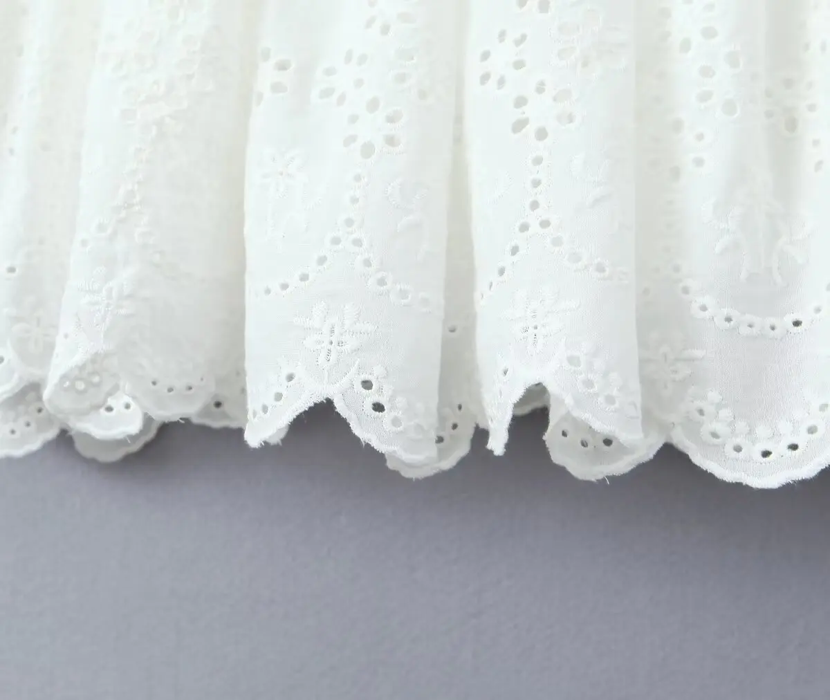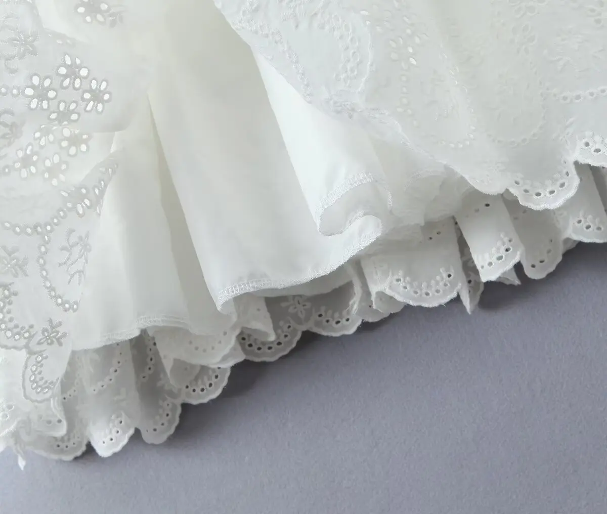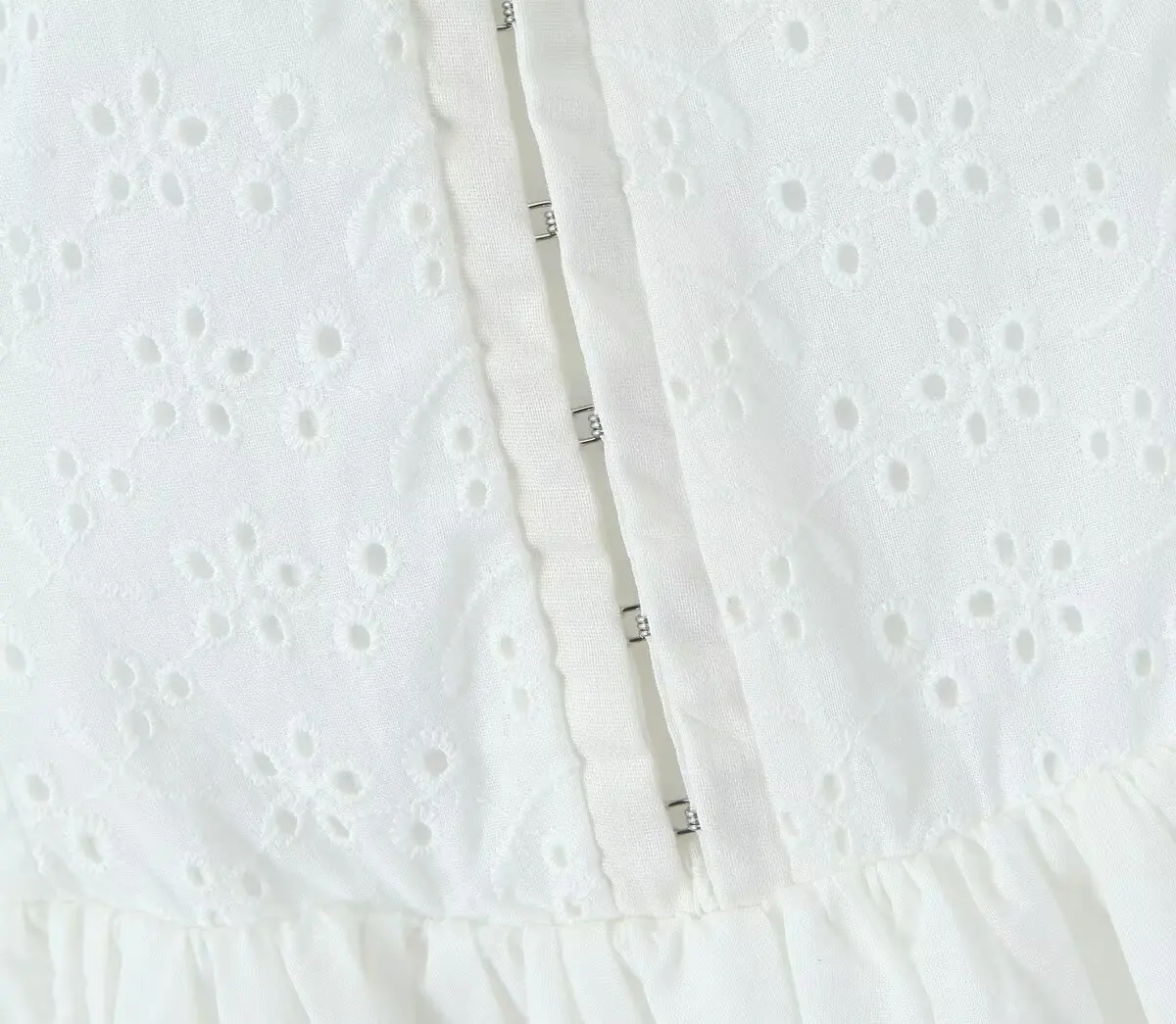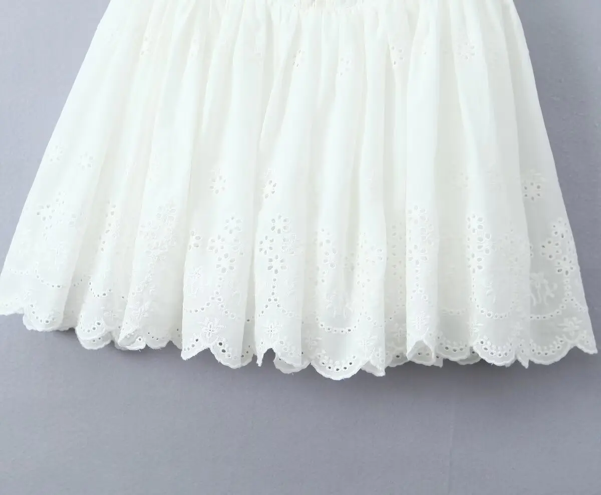 New 2025 Women Hollow Out Embroidery White Tank Dress