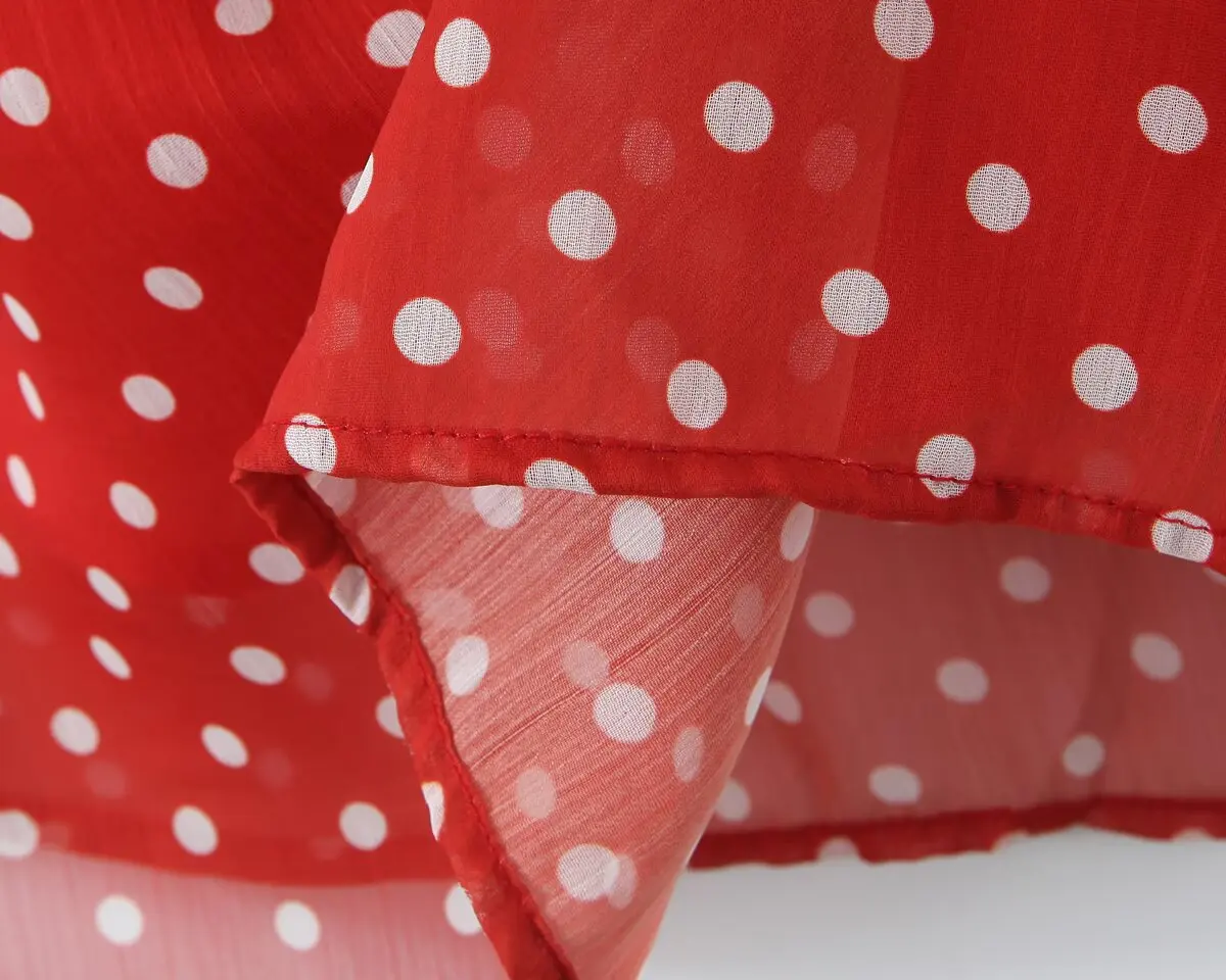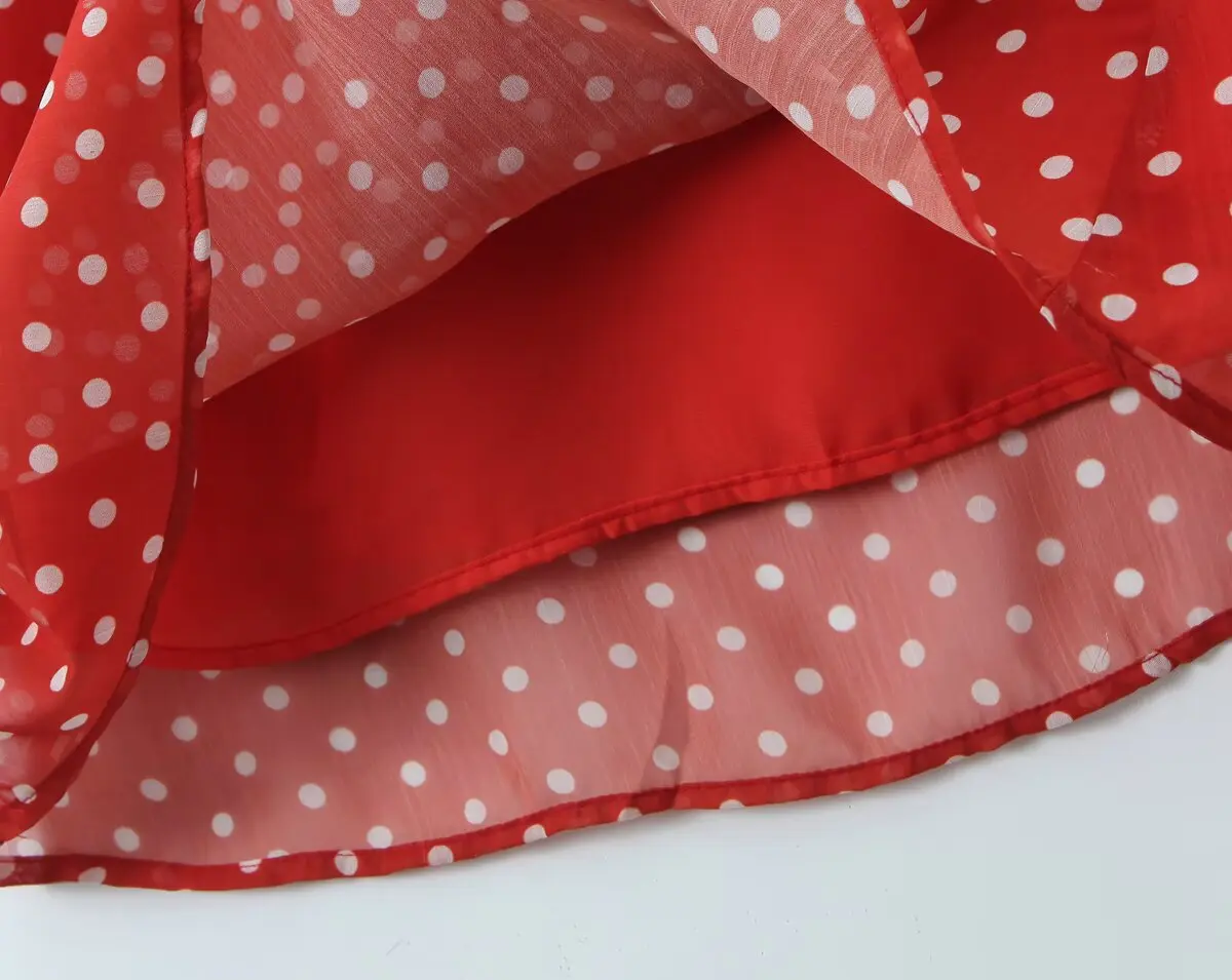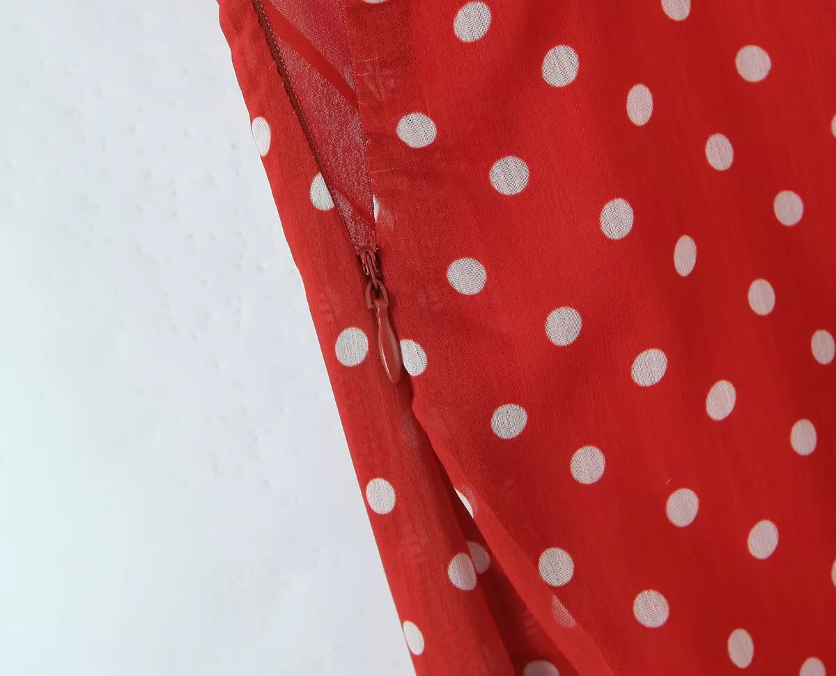 New 2025 Women Polka Dot Red Sexy Sling Dreses Ruffle O Neck A-line Midi Summer