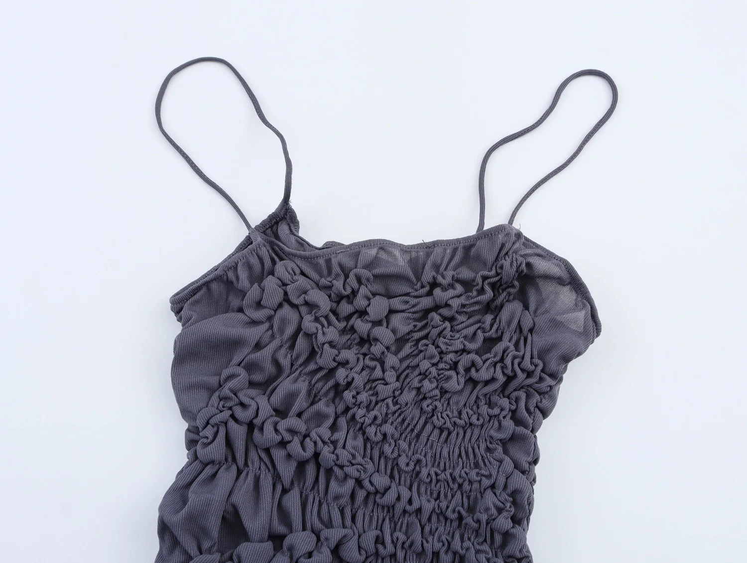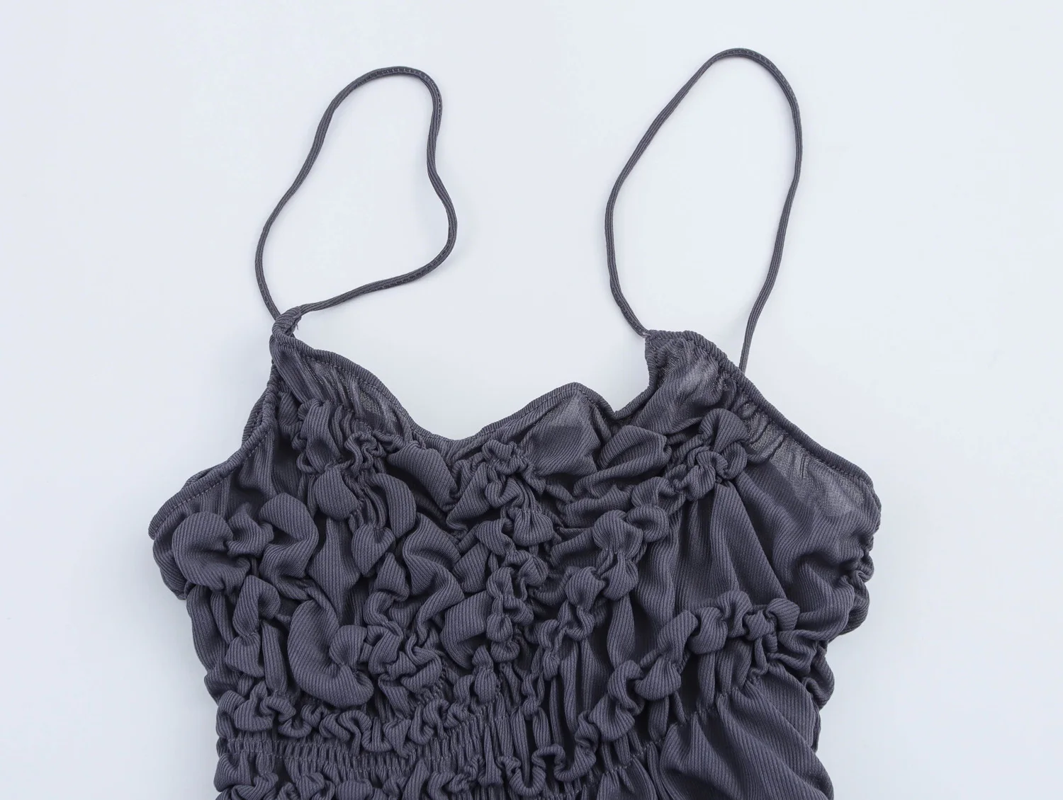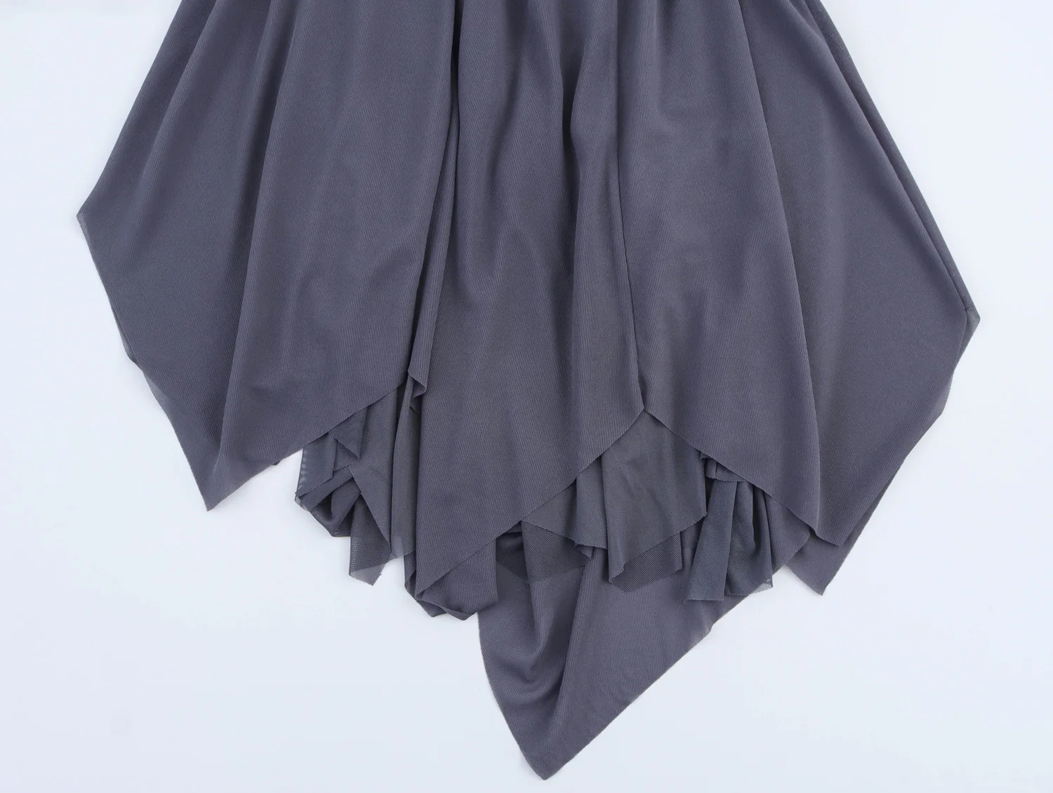 New Women Sexy Spaghetti Straps O Neck Ruched Asymmetrical Dress