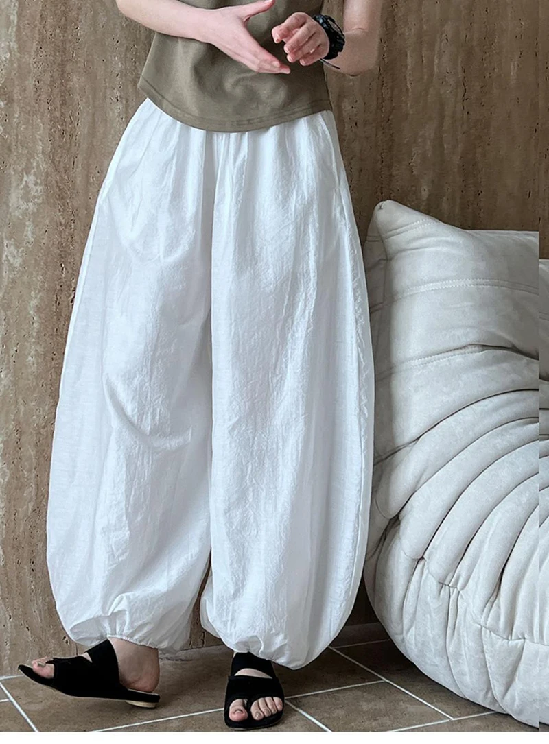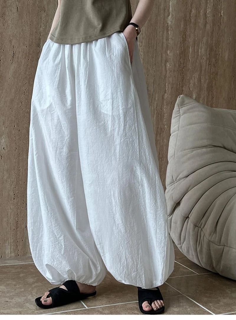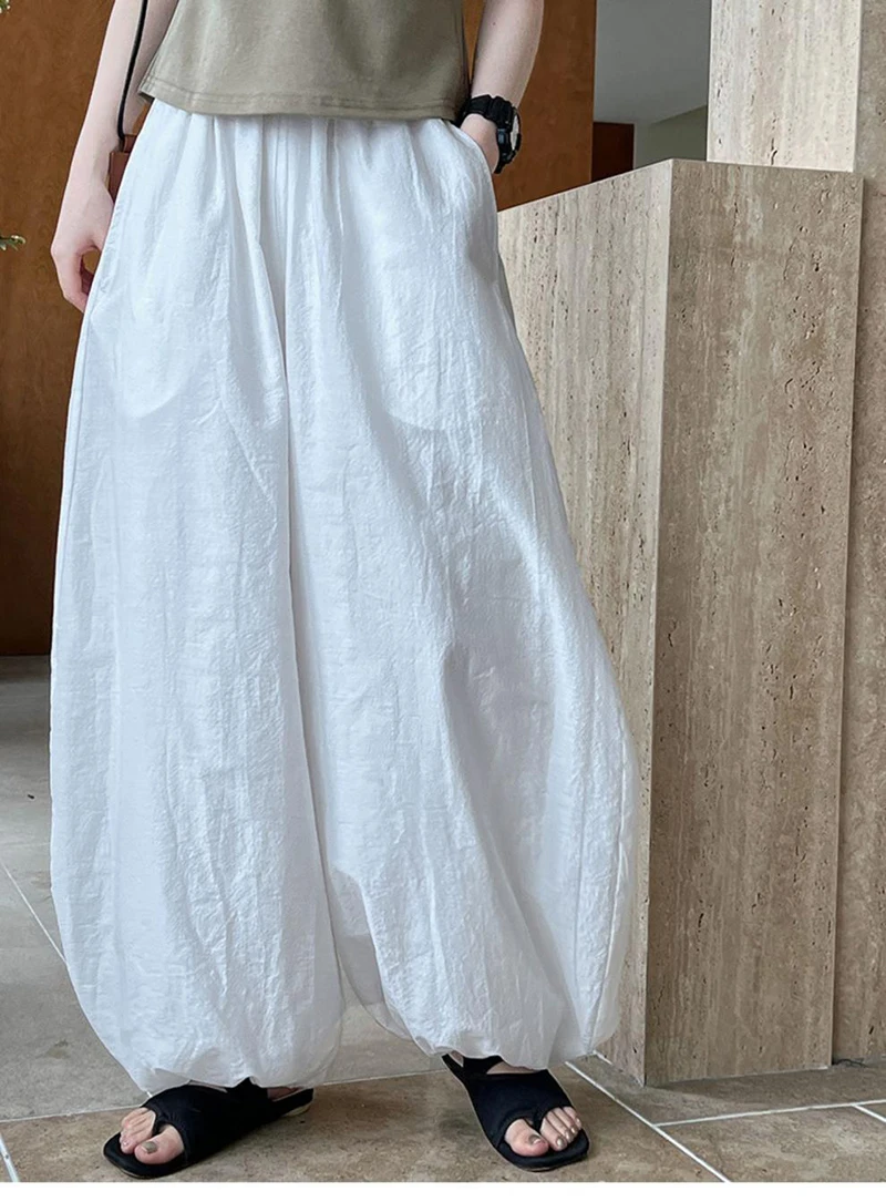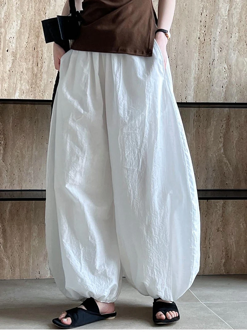 Oversize Women Pure Cotton Pants Summer Loose White Causal Lantern Trousers Fashion New Female Wide Leg Pants