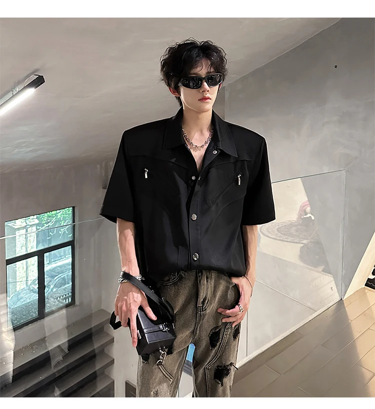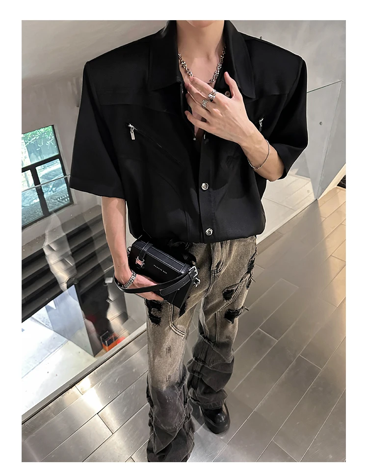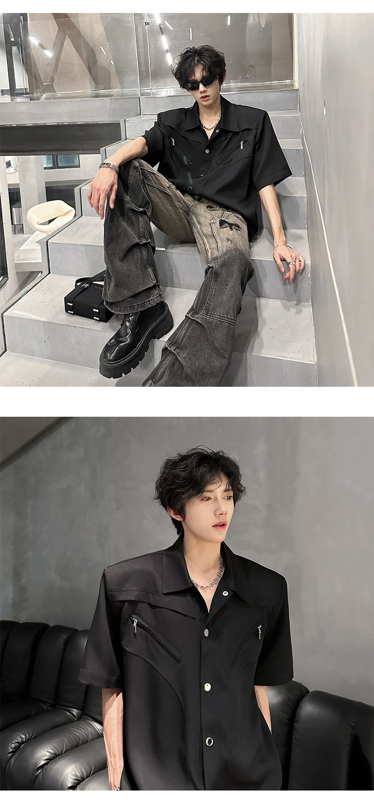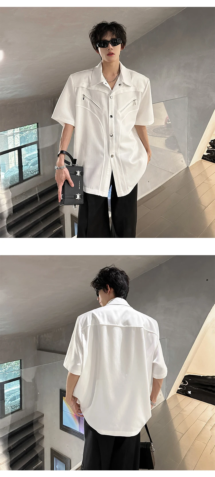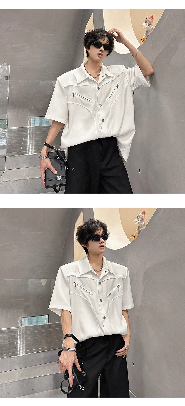 Patchwork shirt men Zip Trim Stage Performance Shirt Trendy Casual Fashion Slim Fit Party Club Wear Stagewear Costume Apparel