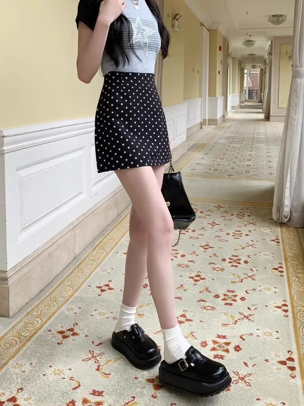 Polka Dot Summer Casual Bag Hip Skirt Women's High Waist A-line Skirt Suit Skirt