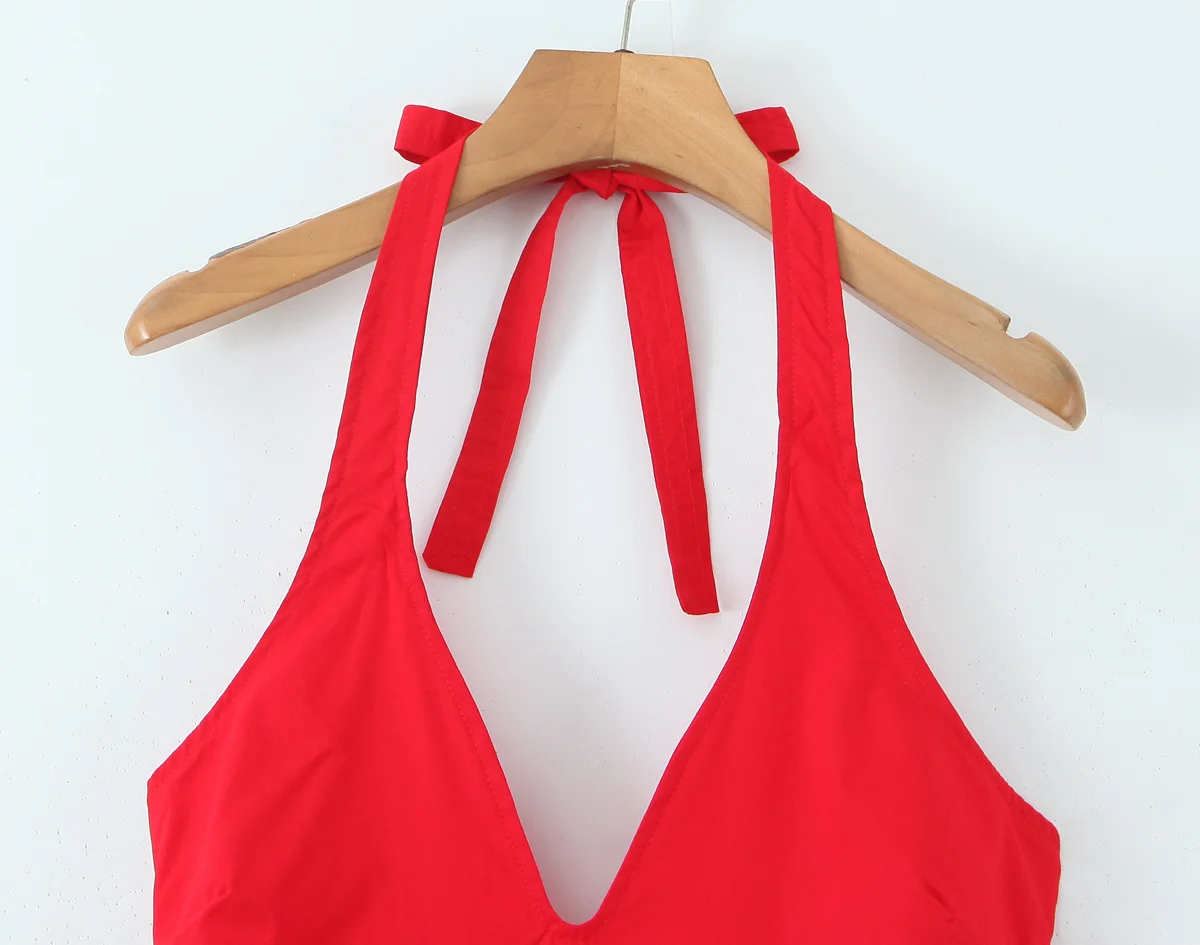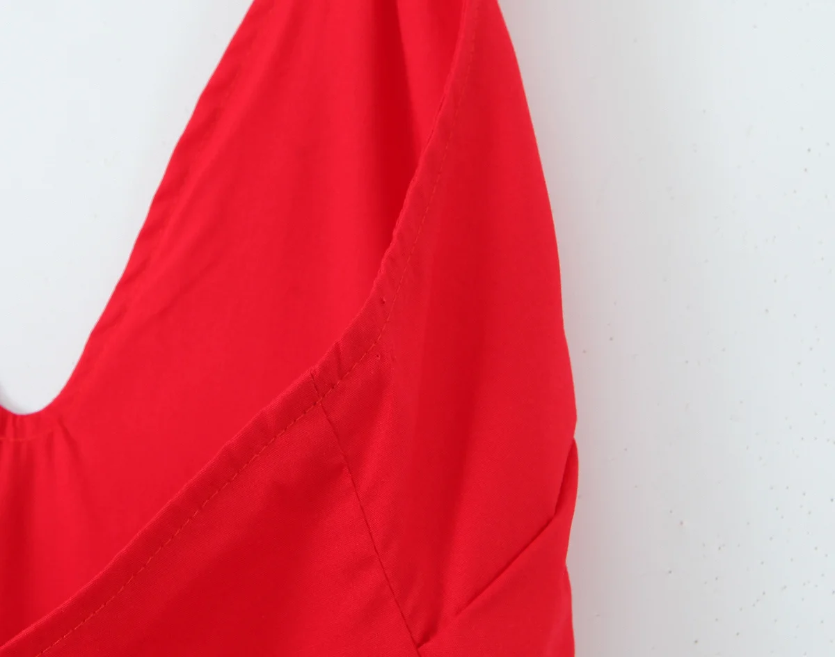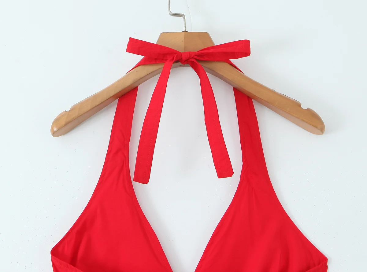 Red Elegant Slim Evening Party Dresses For Women Sexy Backless Low Waist A-line Midi Long Halter Dress Cotton Robe