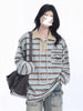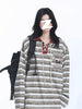 Retro Preppy Style Striped T Shirt Women Loose Long Sleeve American Retro Tees Fall New Letter Embroidery Lace Up Patchwork Tops