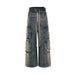 RO Style Gradient Ribbons Multi-pockets Drawstring Jeans for Men Harajuku Streetwear Baggy Y2K Denim Trousers Oversized Cargos