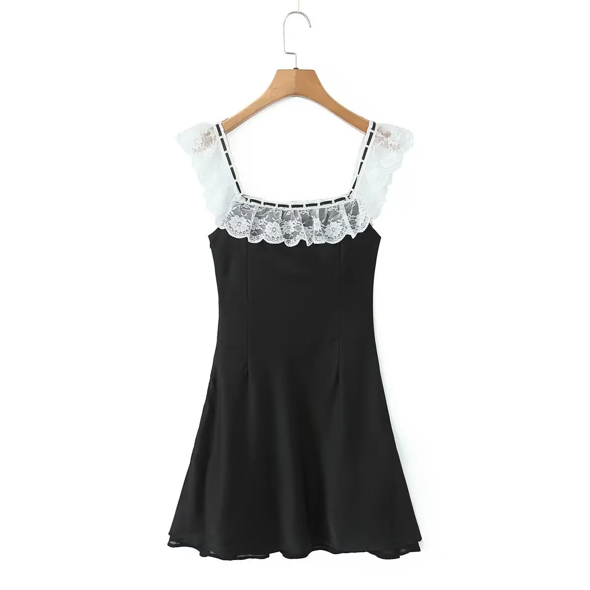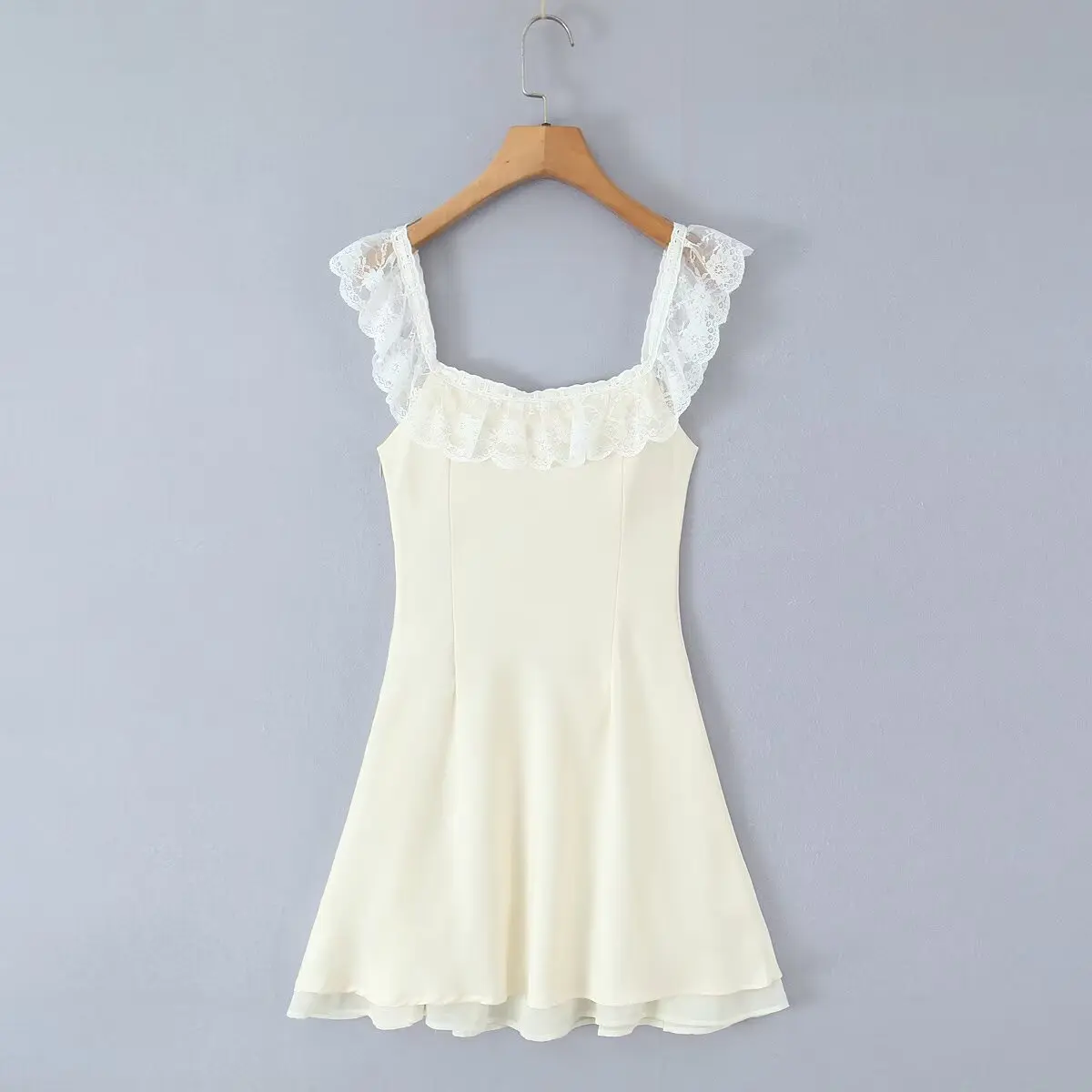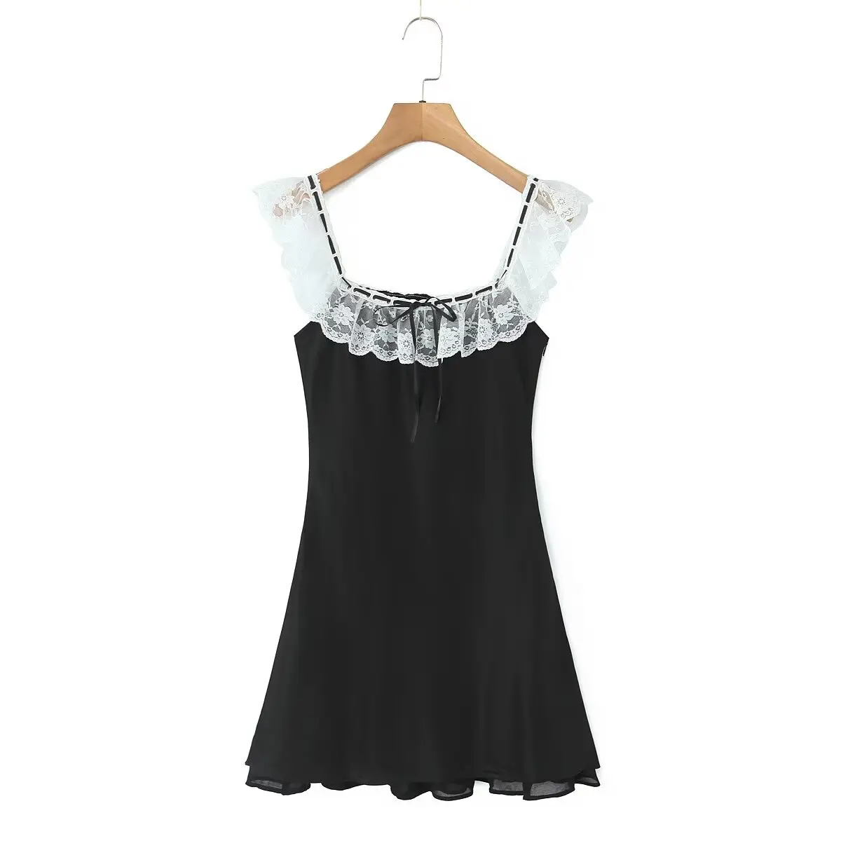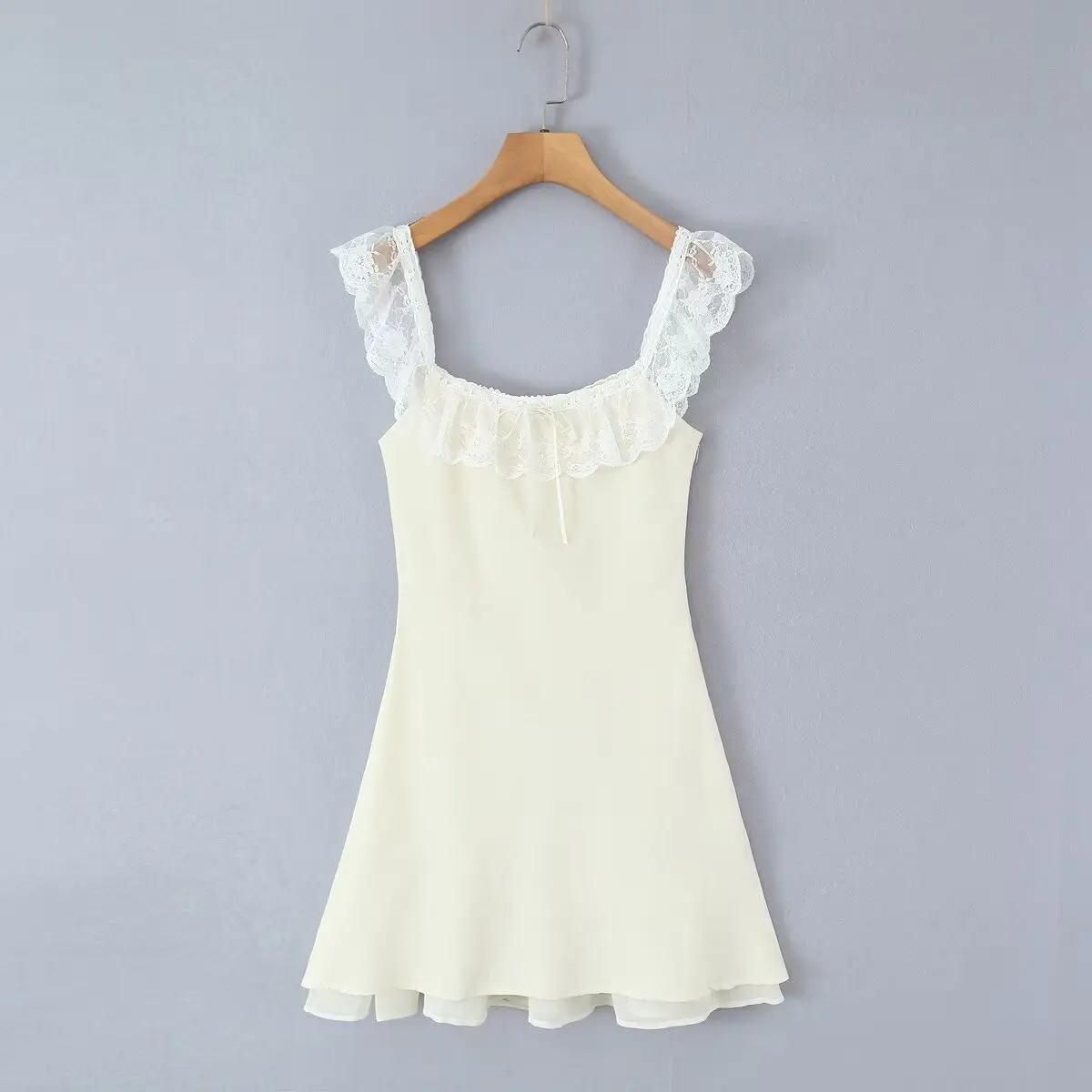 Romantic Girl Lace Spliced Sexy Off Shoulder Dress Women Short Sleeve Slim A-line Mini Dresses Summer Robe 2025