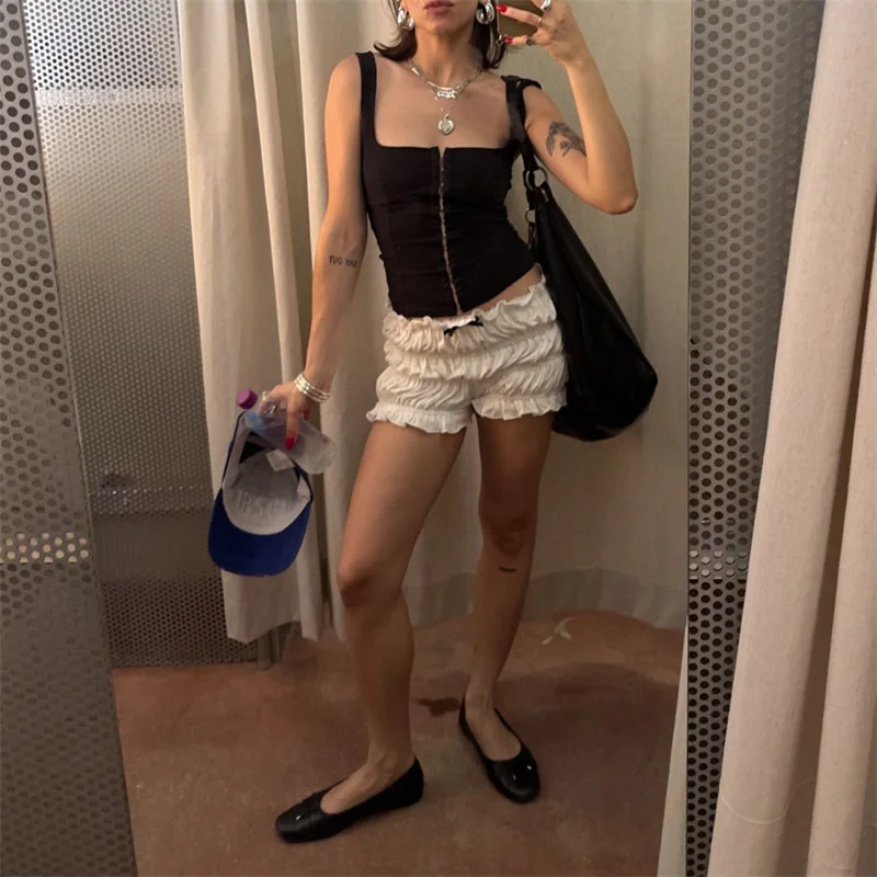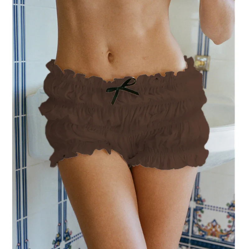 Ruffle Shorts Coquette Clothing Women 3D Bow Lettuce Trim Elastic Waist Tiered Bloomers Bottoms y2k Clothes Streetwear
