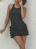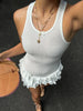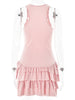 Ruffled Summer Fashion Mini Dress For Women Patchwork Slim Tee Bow Solid Sleeveless Dress Women's White Bodycon Dress New