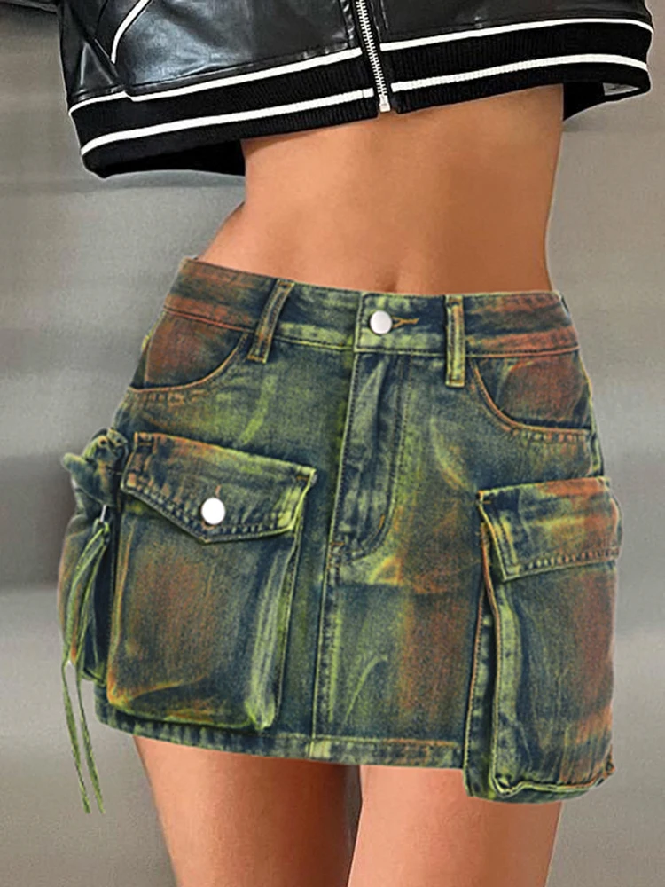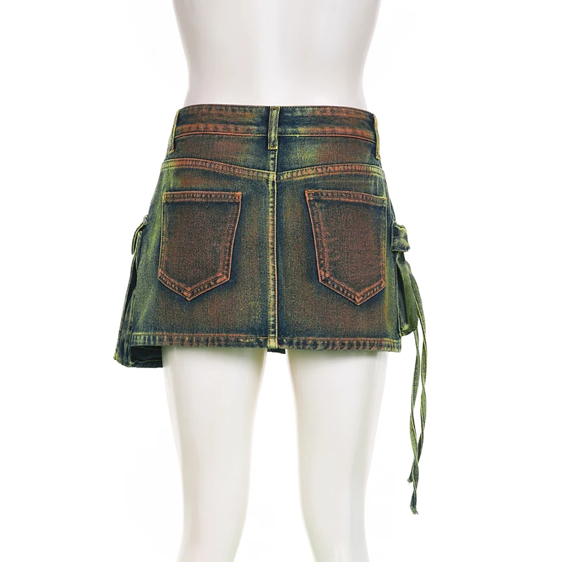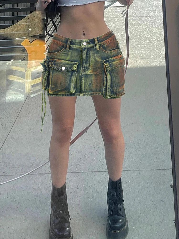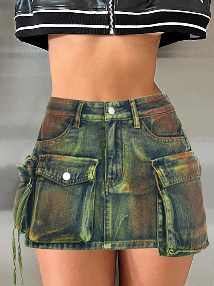 Safari Style Big Pockets Denim Skirt Sexy Slim Mid-Waisted Mini Skirts Women  Summer Fashion Streetwear Ladies voguable