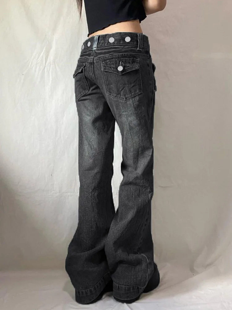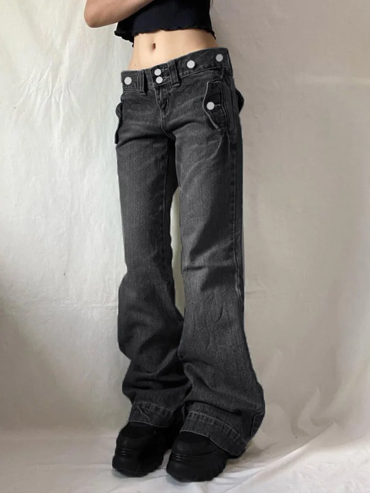 Safari Style Button Decoration Jeans Basic Loose Low-Waisted Wide Leg Pants Women Autumn Winter Streetwear Ladies