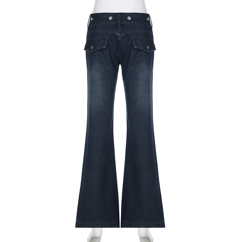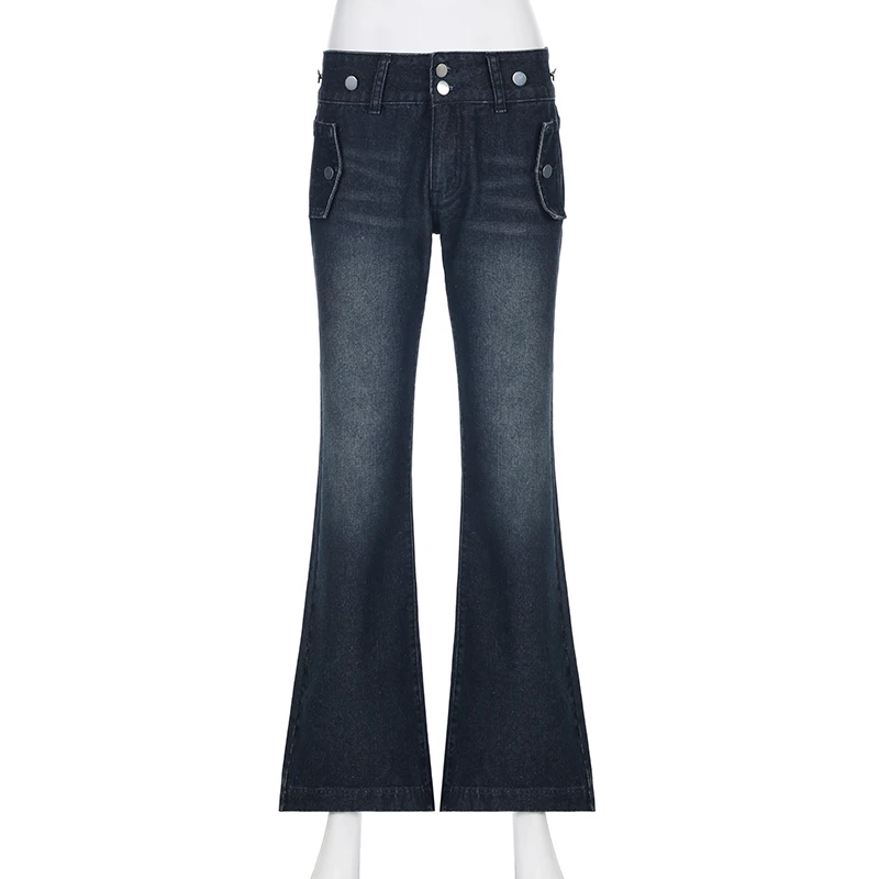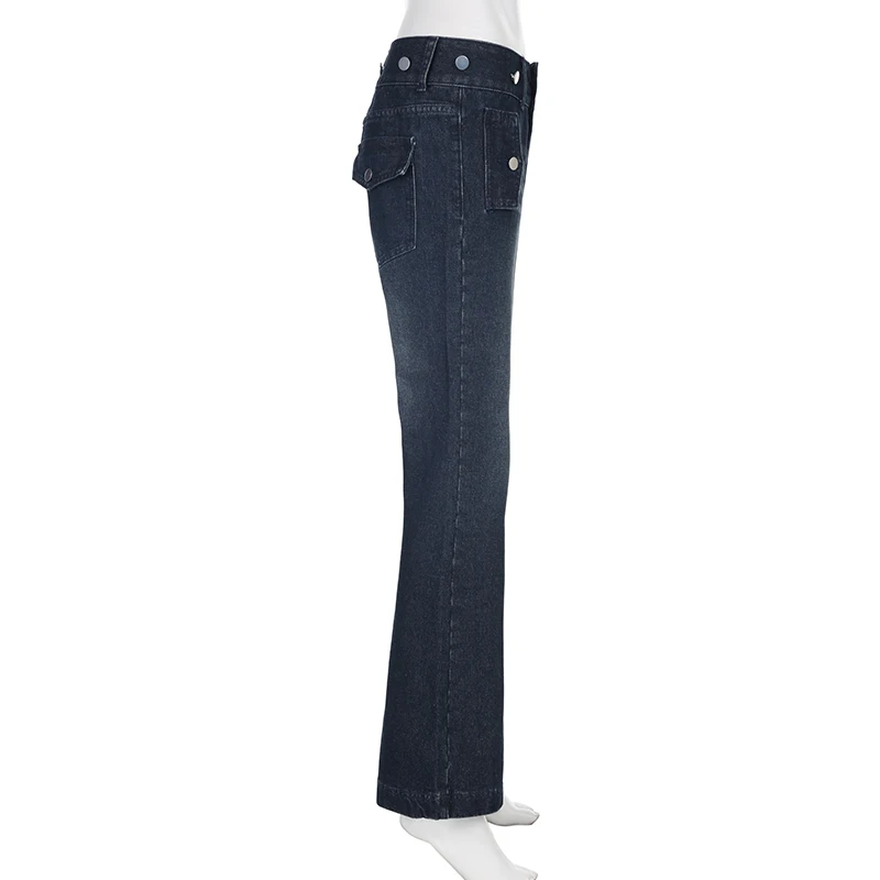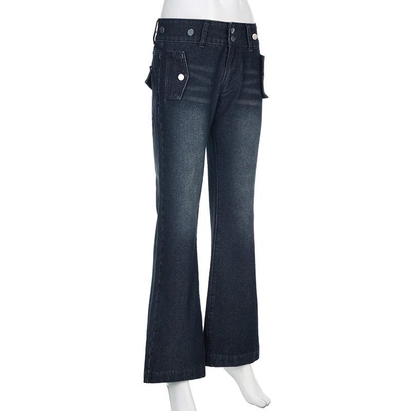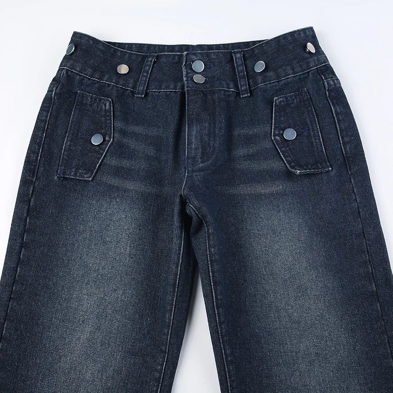 Safari Style Button Decoration Jeans Basic Loose Low-Waisted Wide Leg Pants Women Autumn Winter Streetwear Ladies voguable