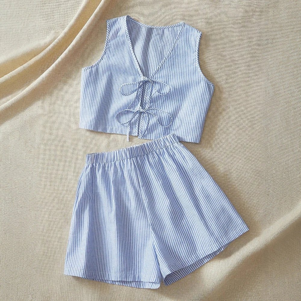Sets Summer Comfortable Basic 2025 Stripes V-Neck Sleeveless Cropped Top Loose Fit Shorts Casual Sets
