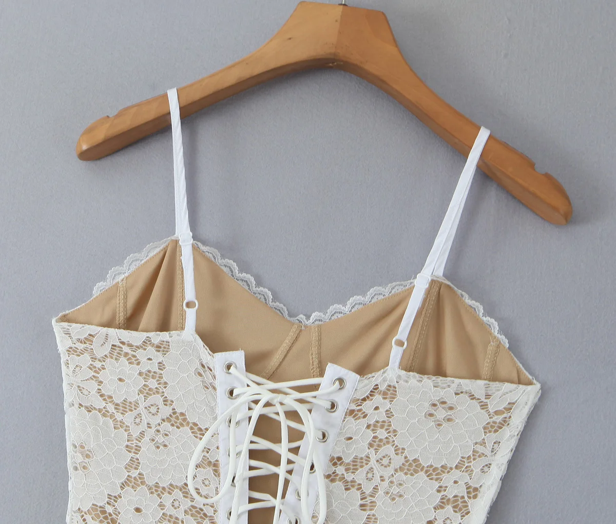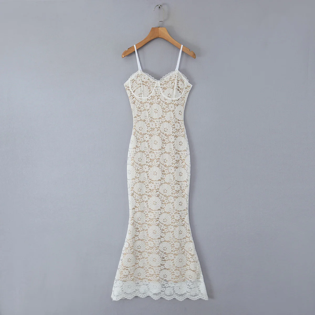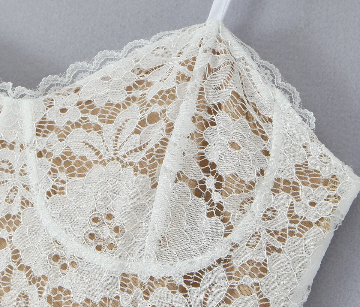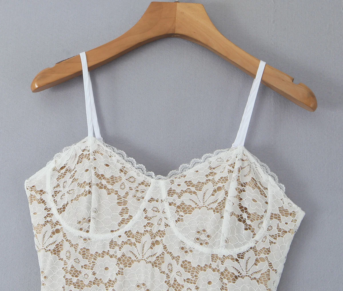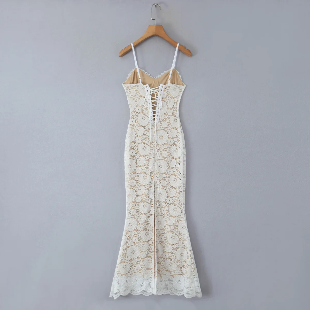 Sexy Backless Bandage Elegant Lace Dress Women Thin Straps Floral Bodycon Hollow Out