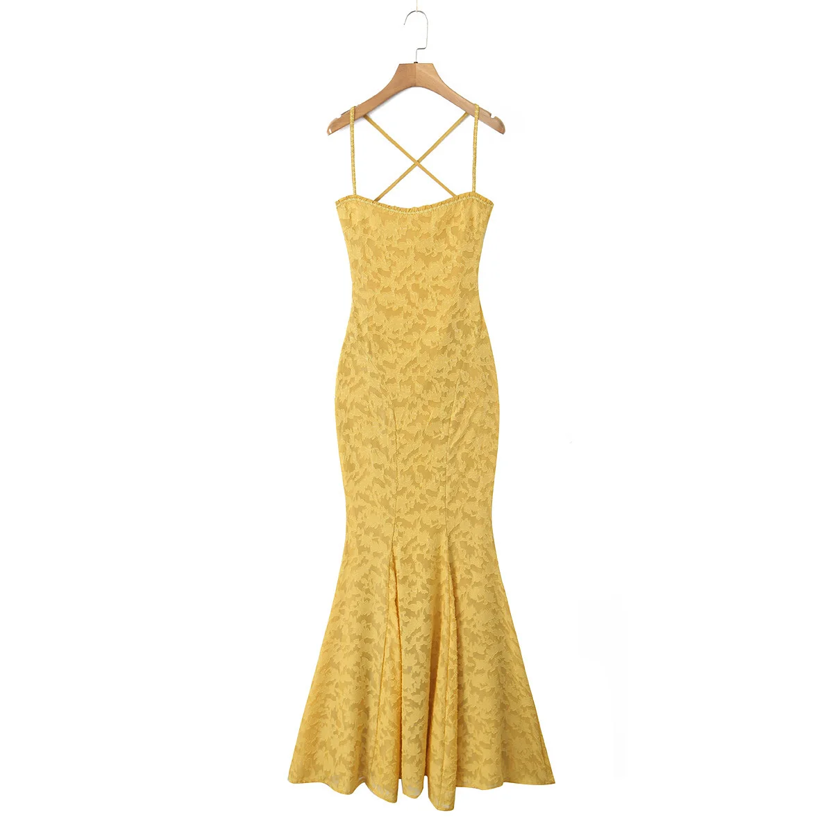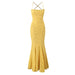 Sexy Backless Bandage Long Fishtail Dress For Women Elegant Wedding Guests Party Evening Gowns Dresses Maxi Robe Yellow