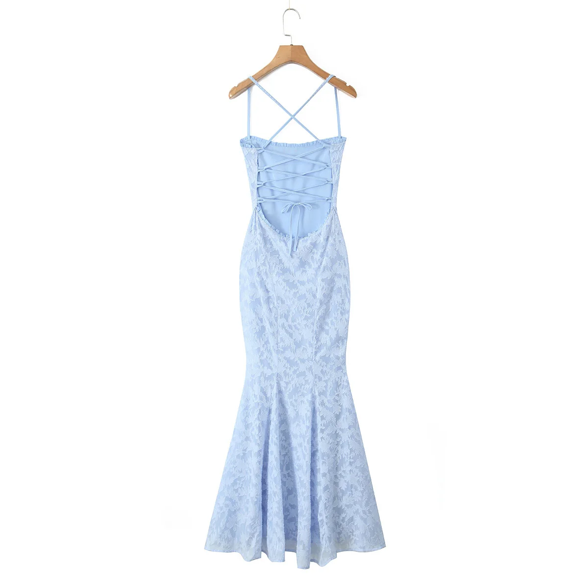 Sexy Backless Bandage Long Fishtail Dress For Women Elegant Wedding Guests Party