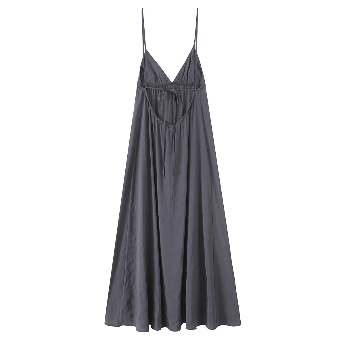 Sexy Backless Flowy Midi Slip Dress Women High Waist V Neck A-line Holiday Summer Dresses Casual Beach Vestidos