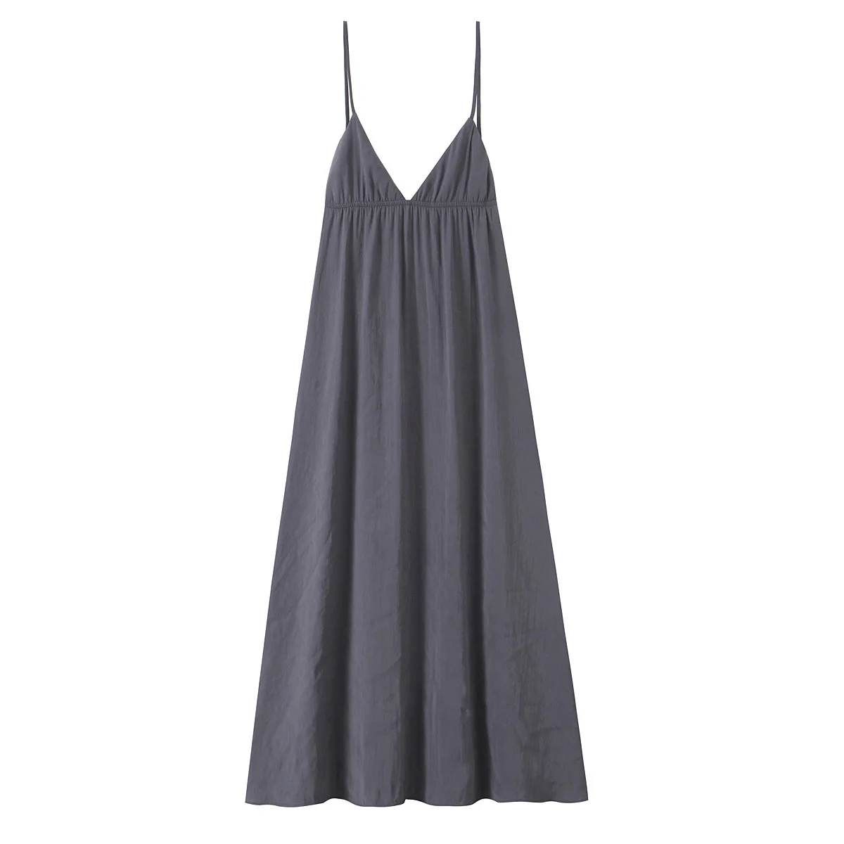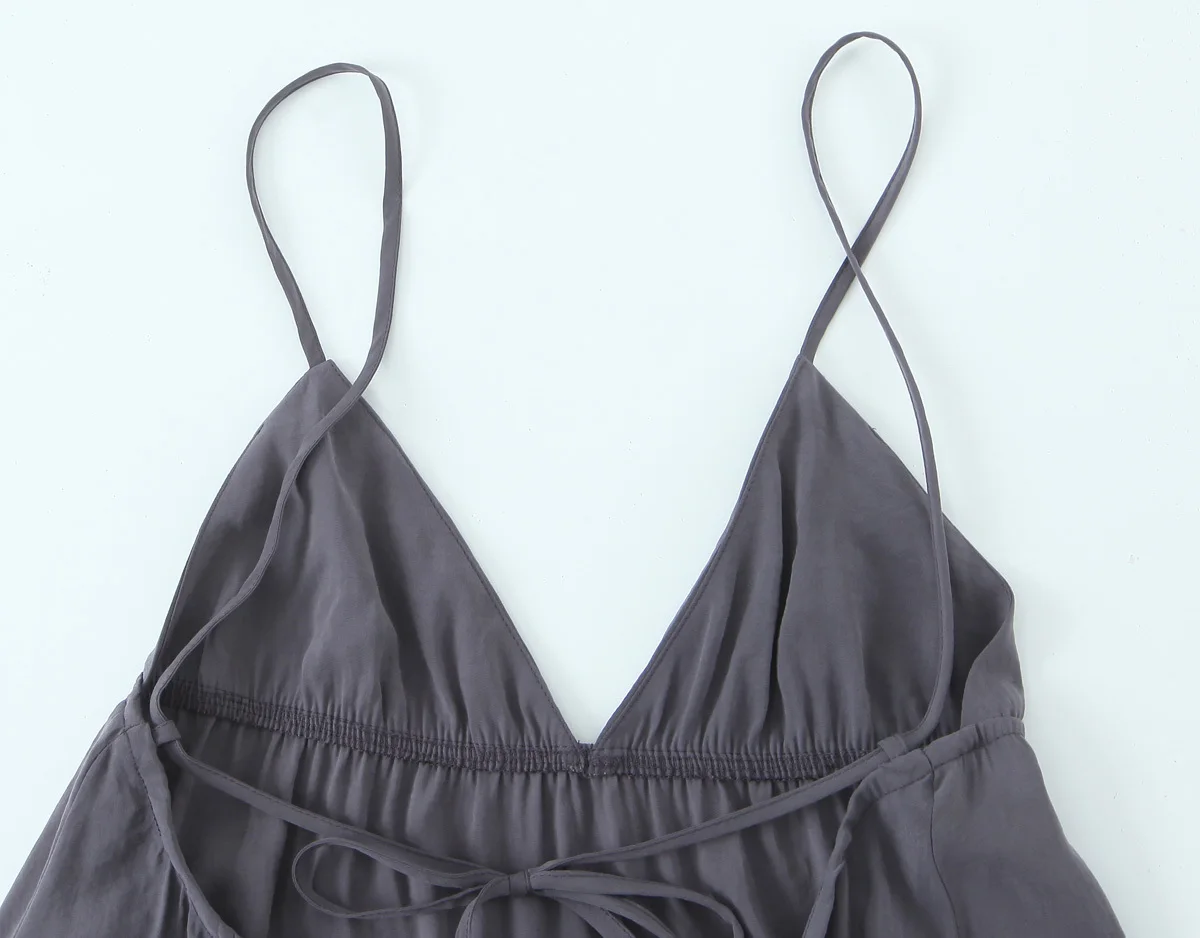 Sexy Backless Flowy Midi Slip Dress Women High Waist V Neck A-line Holiday Summer