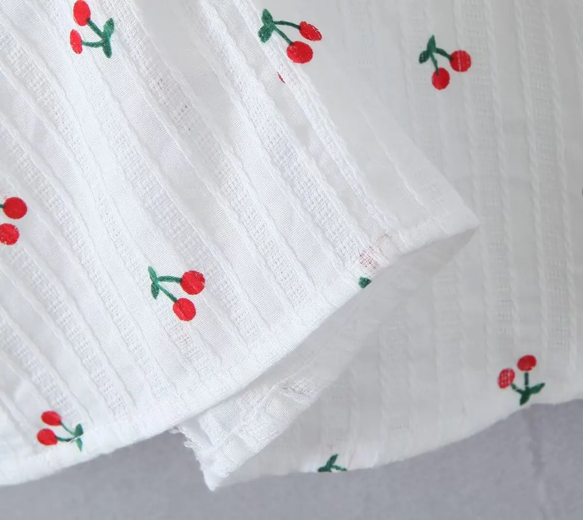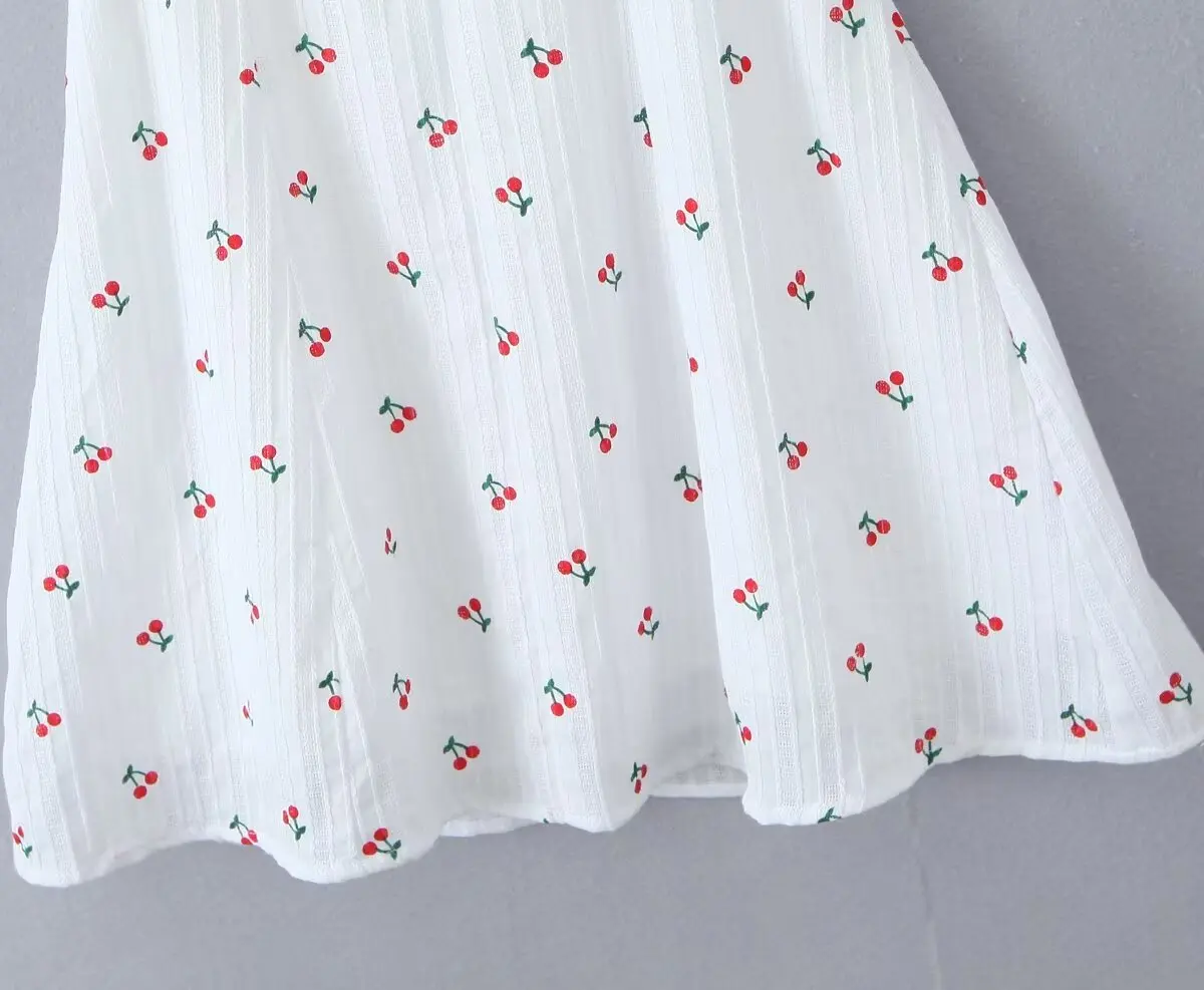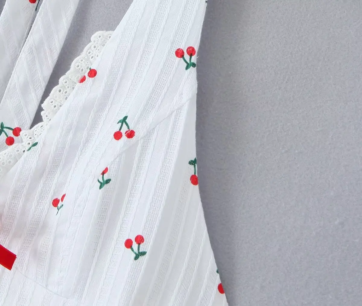 Sexy Backless Halter Holiday Beach Dress For Women Sleeveless A-line Cherry Print Summer Dresses Short Robe