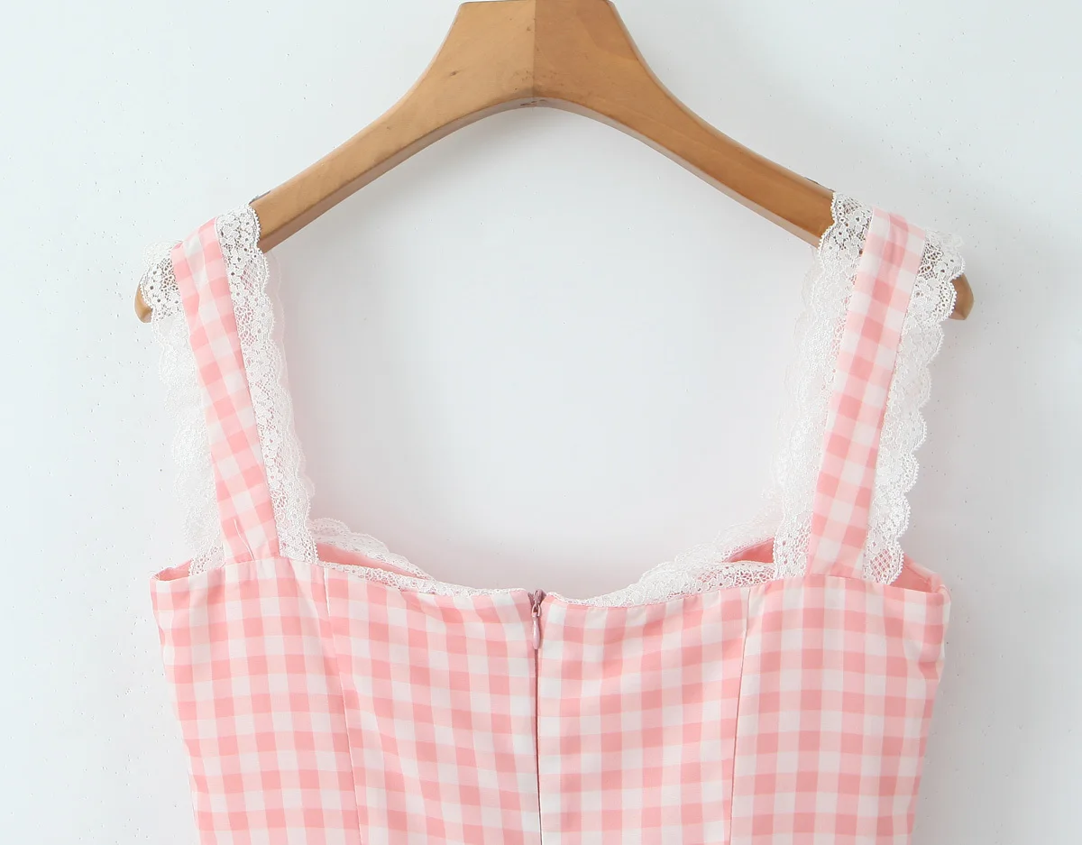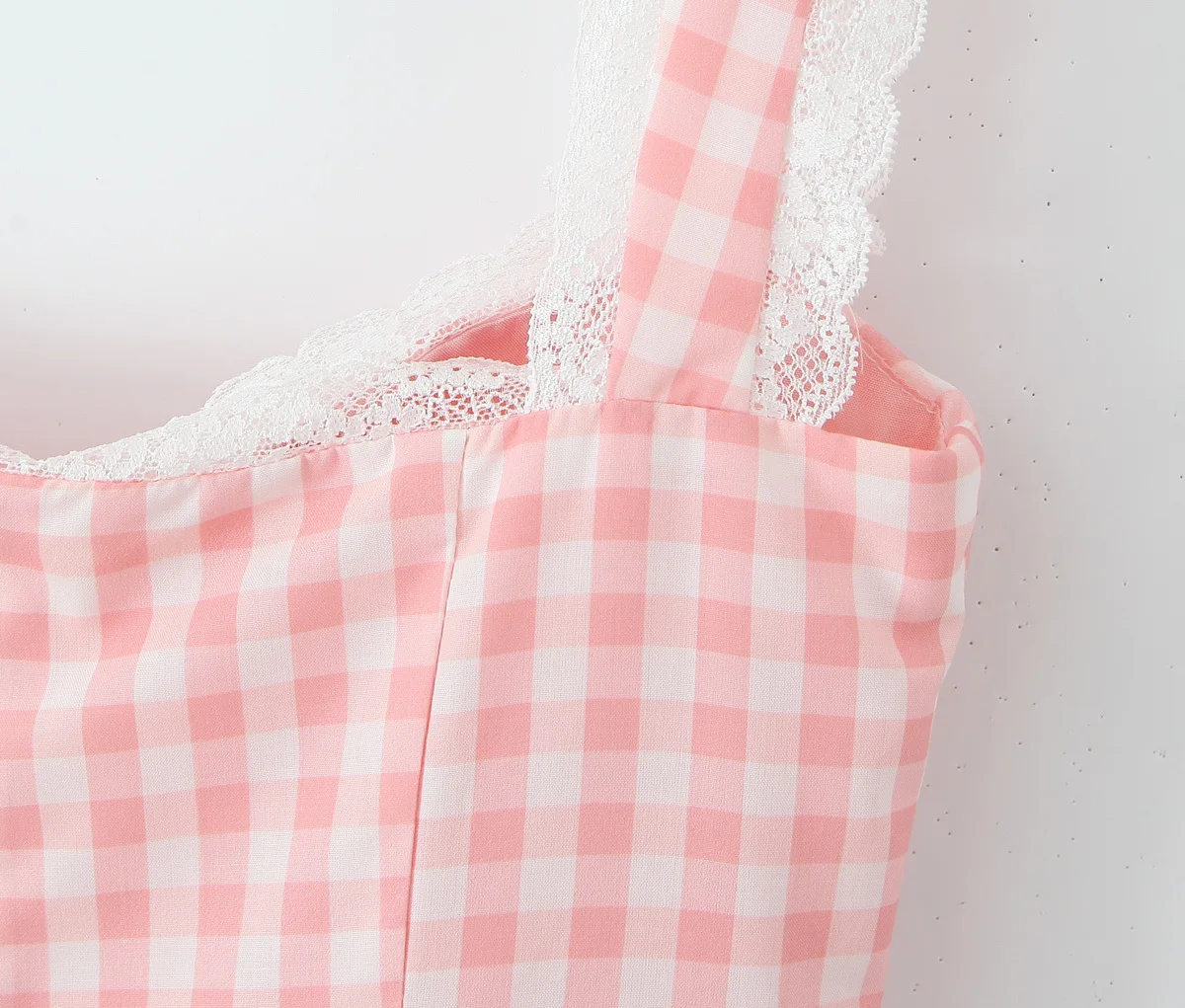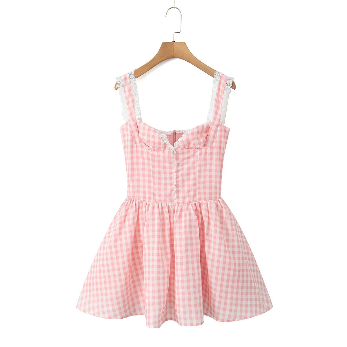 Sexy Elegant Pink Sling Mini Dress For Women Lace Trim Slim Summer Holiday Dresses