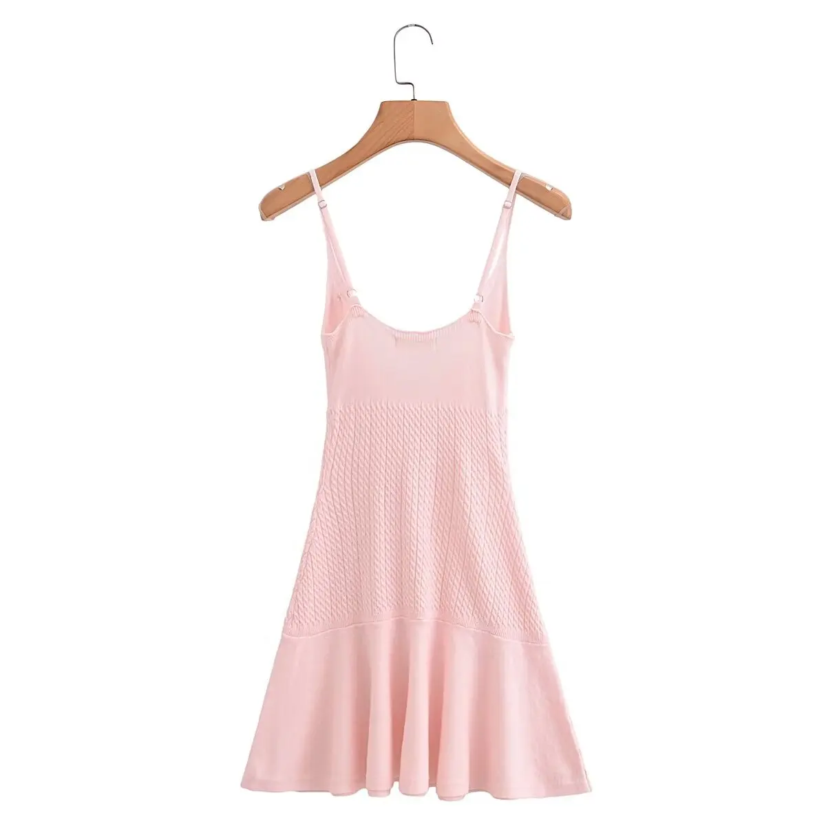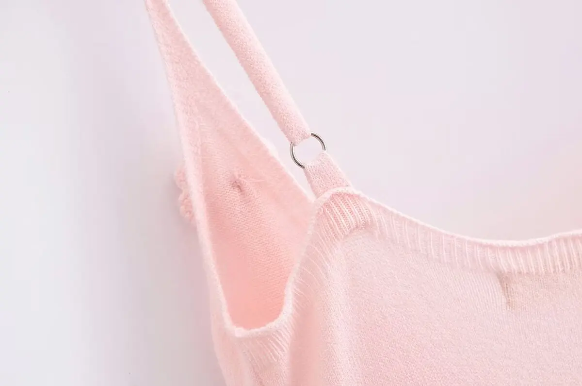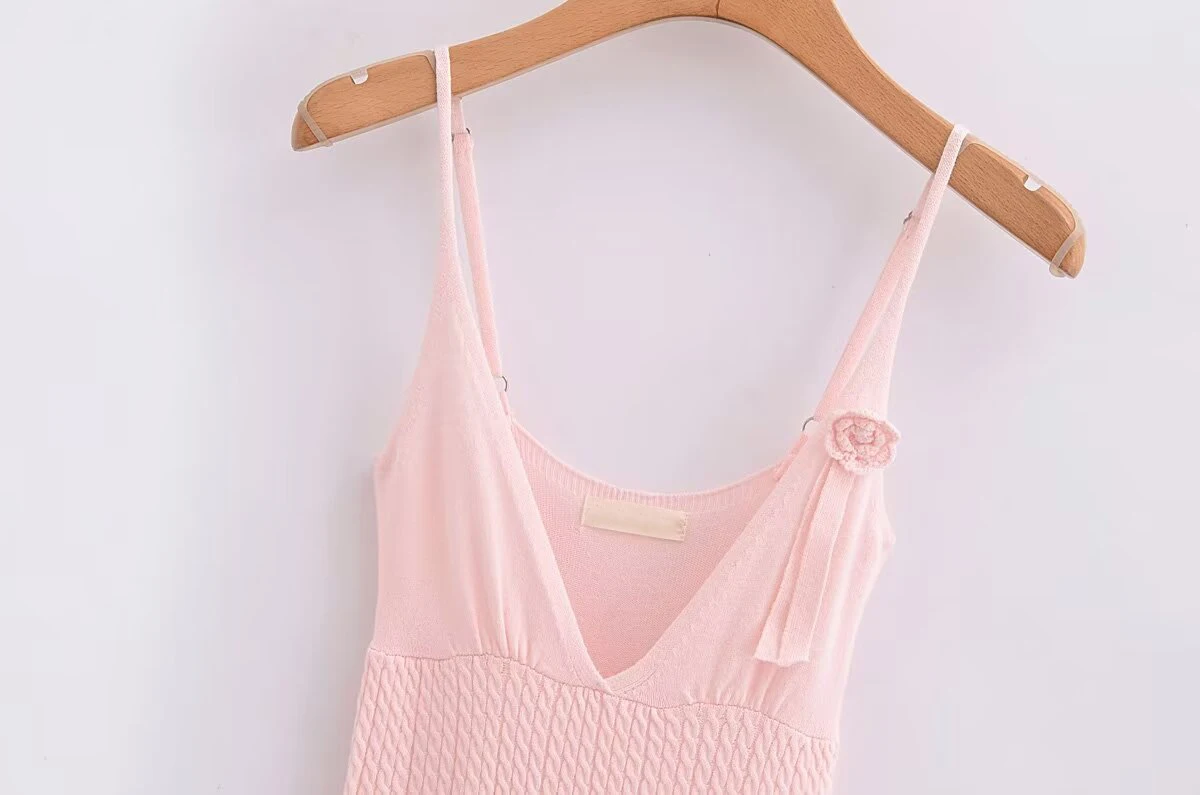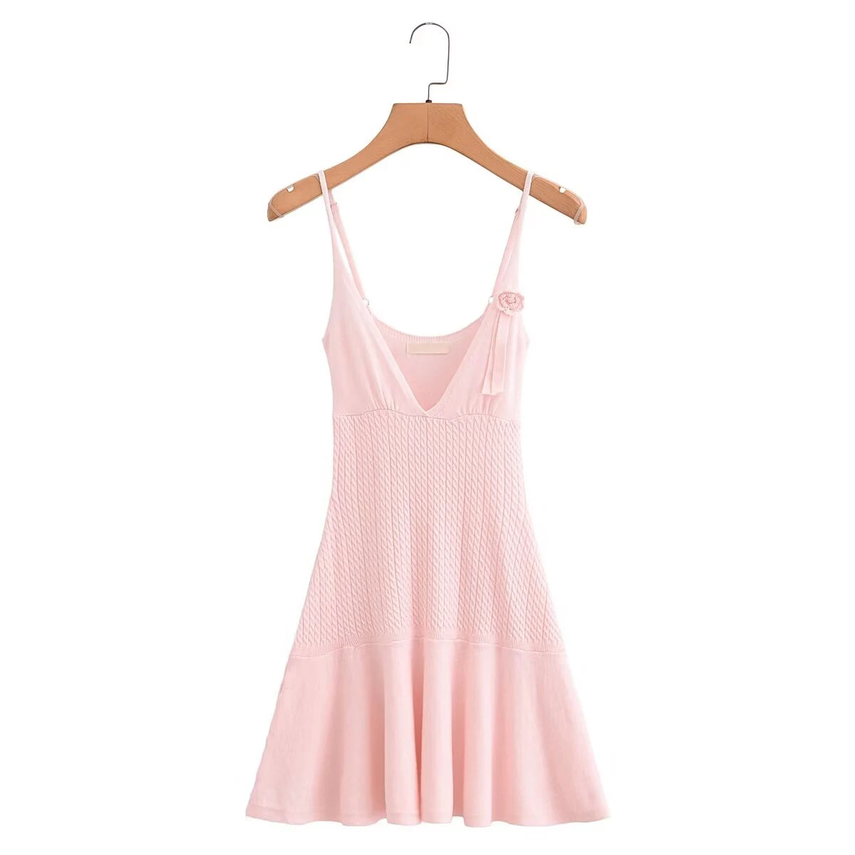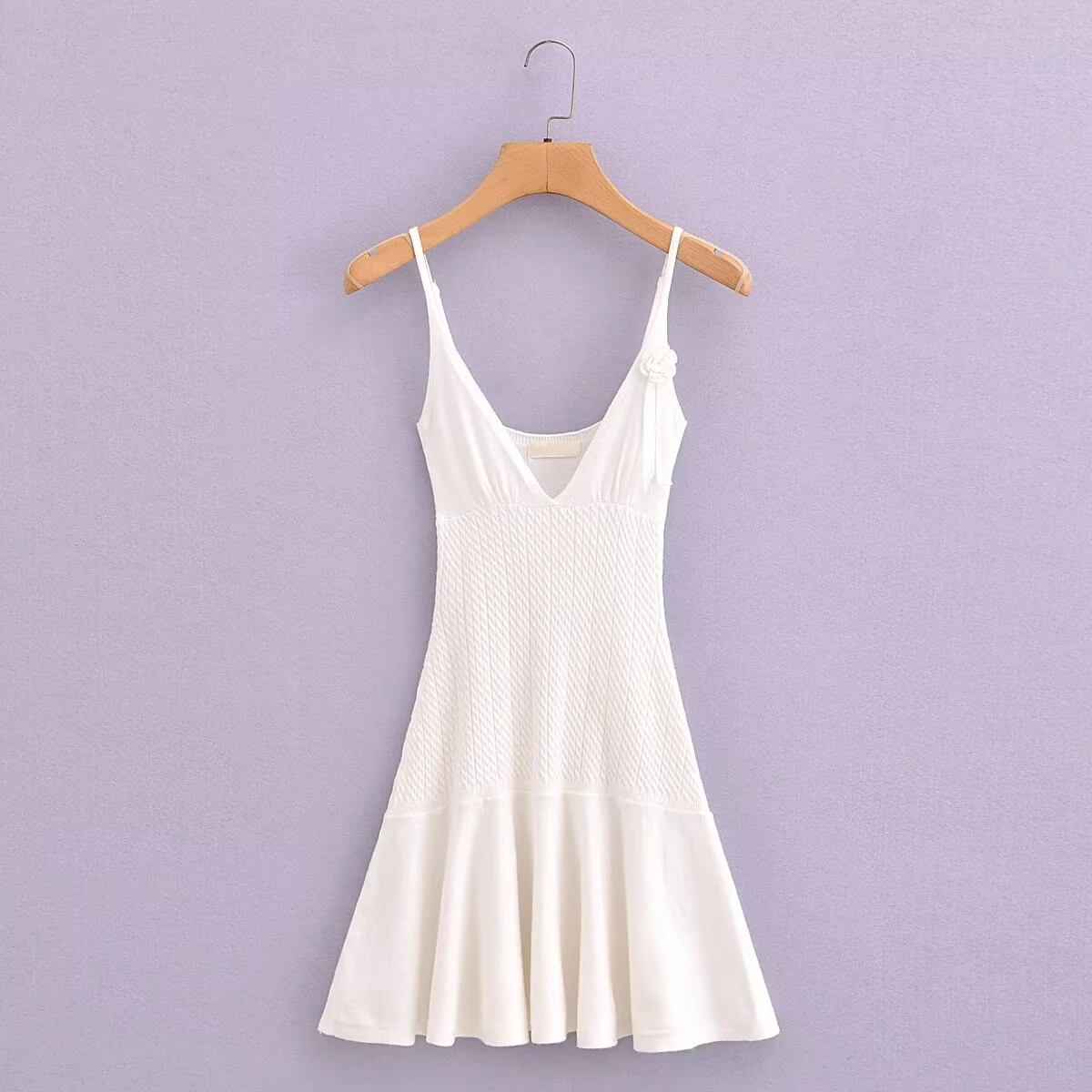 Sexy Elegant Women Floral Appliques Slim Knit Sling Dress V Neck A-line Mini Lady Dresses Summer Robe
