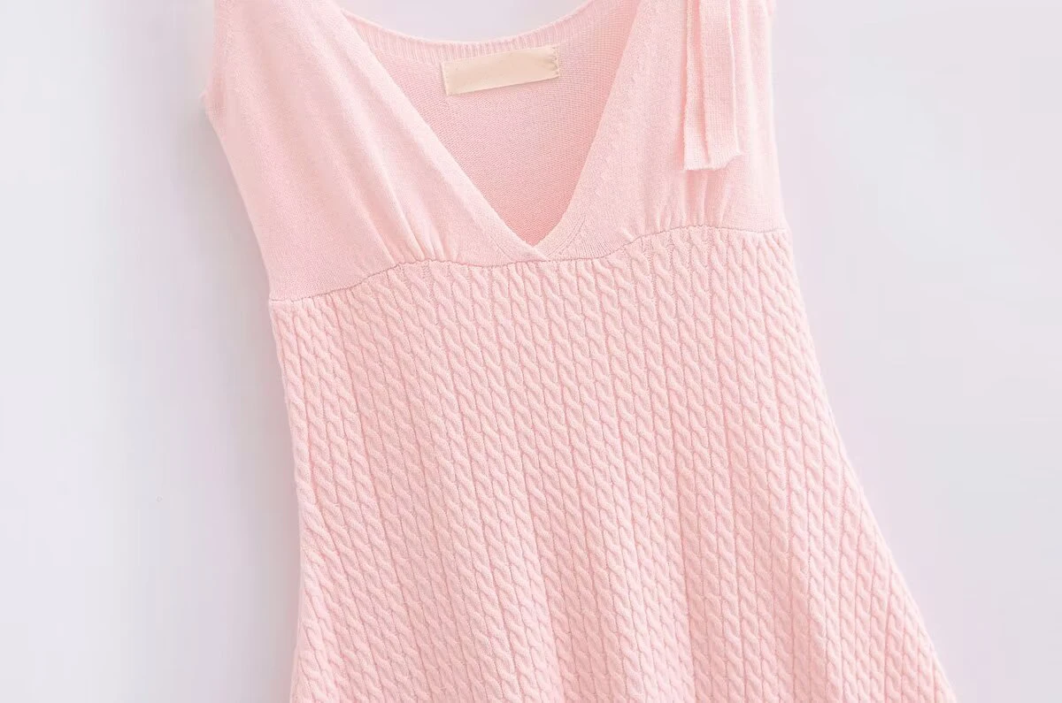 Sexy Elegant Women Floral Appliques Slim Knit Sling Dress V Neck A-line Mini Lady Dresses