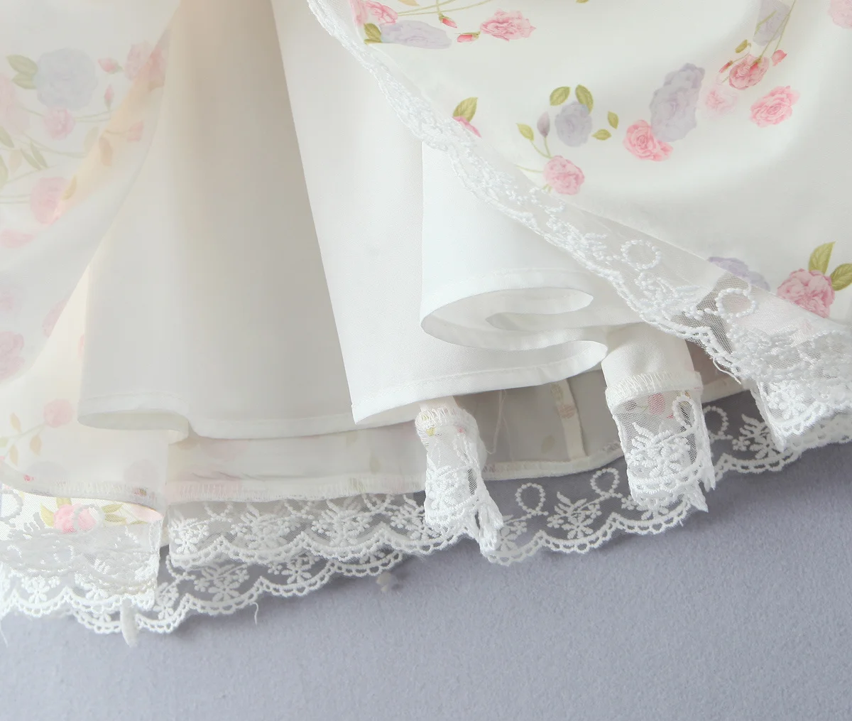 Sexy Elegant Women Lace Patchwork Floral Print Sling Mini Dress Low Waist A-line