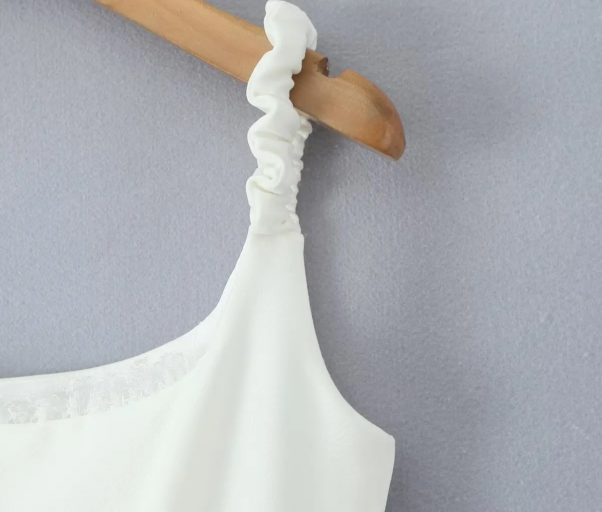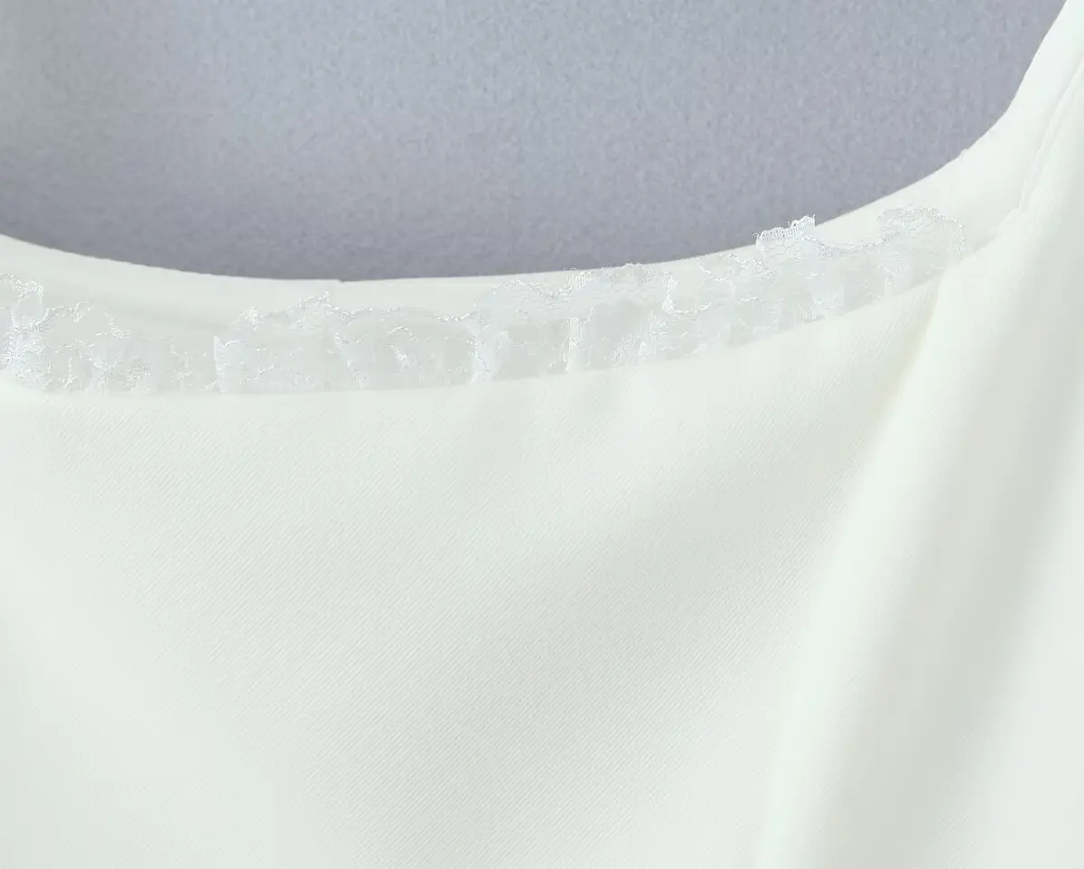 Sexy Elegant Women Lace Trim Black White Spaghetti Straps Dress