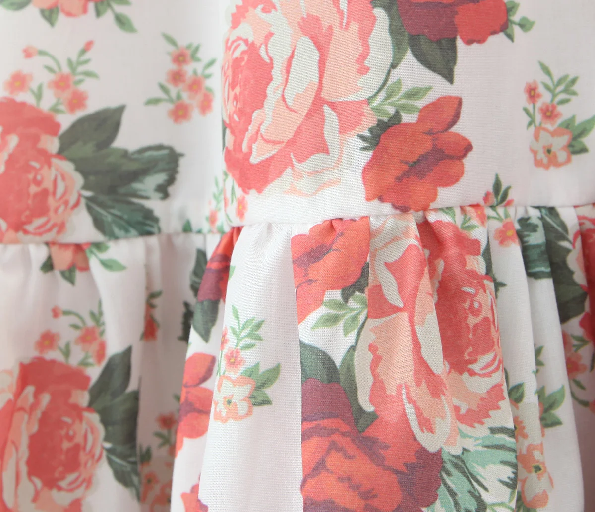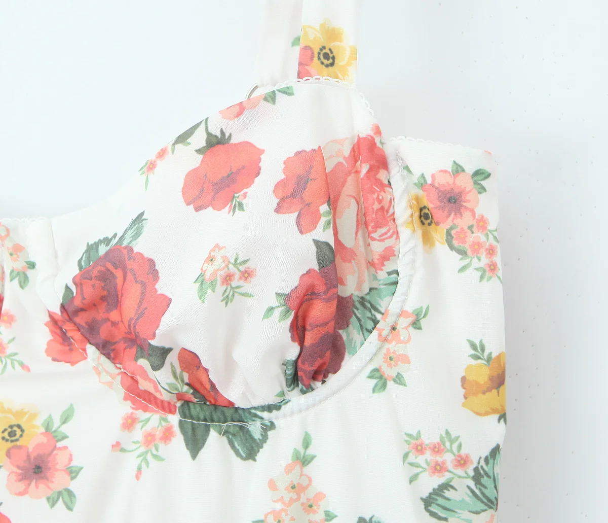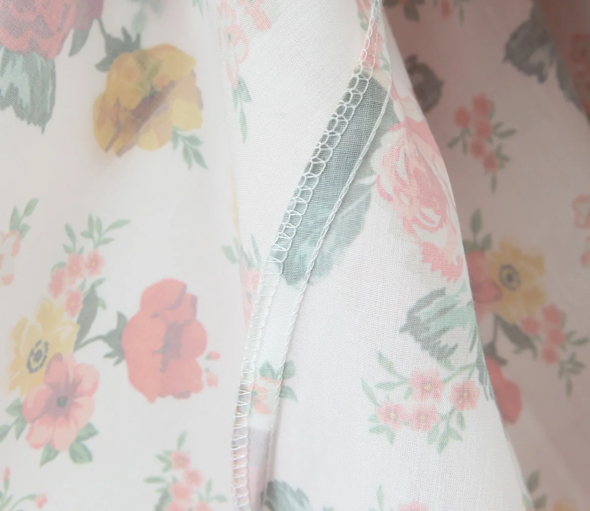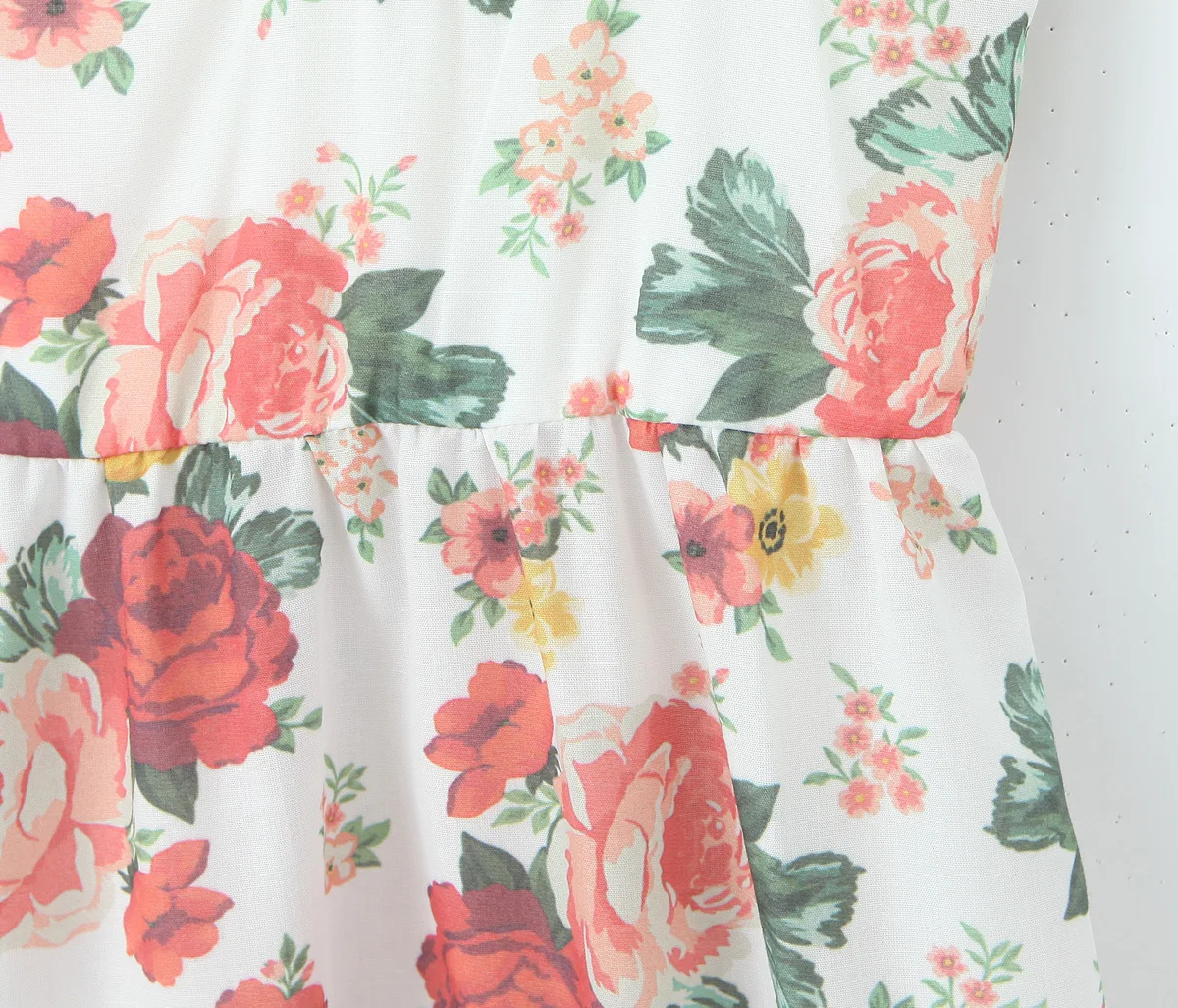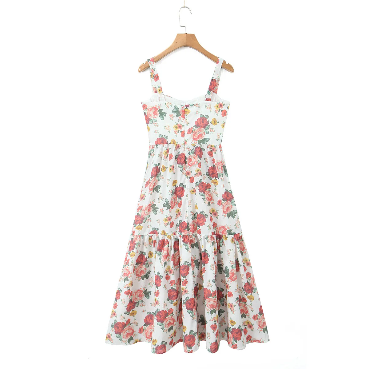 Sexy Elegant Women Lace Trim Floral Print A-line Midi Summer Dress Holiday Party Robe Cotton